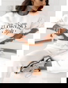 Komplet dresowy z modnymi napisami Reeginaa - ecru Zdobiony solidnym nadrukiem.Bluza nie posiada kaptura, a spodnie mają gumkę w pasie i kieszonki na bokach.