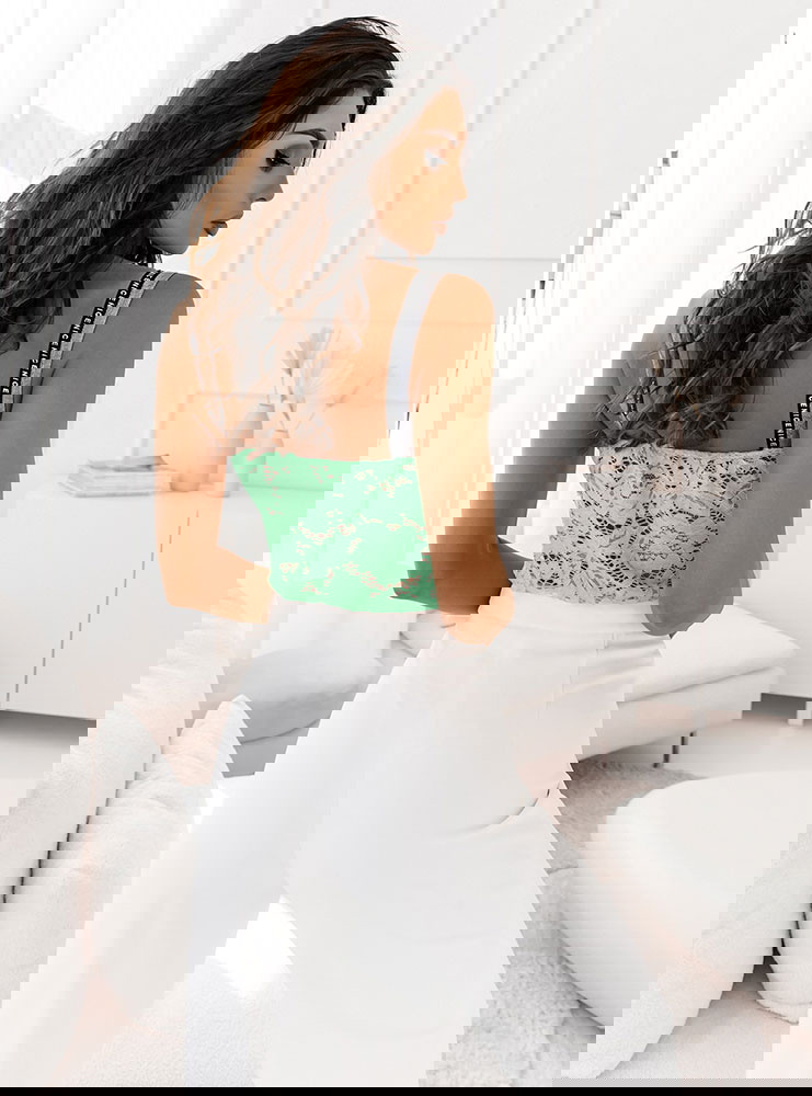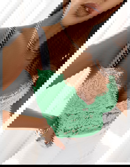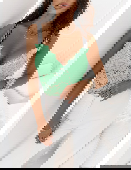 Miętowe koronkowe body z ozdobnymi ramiączkami Wekiaa