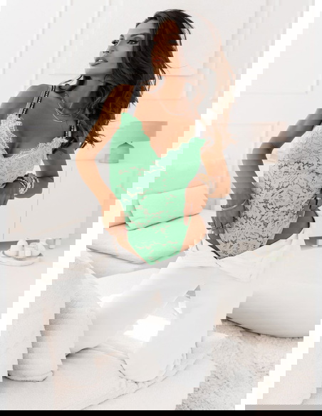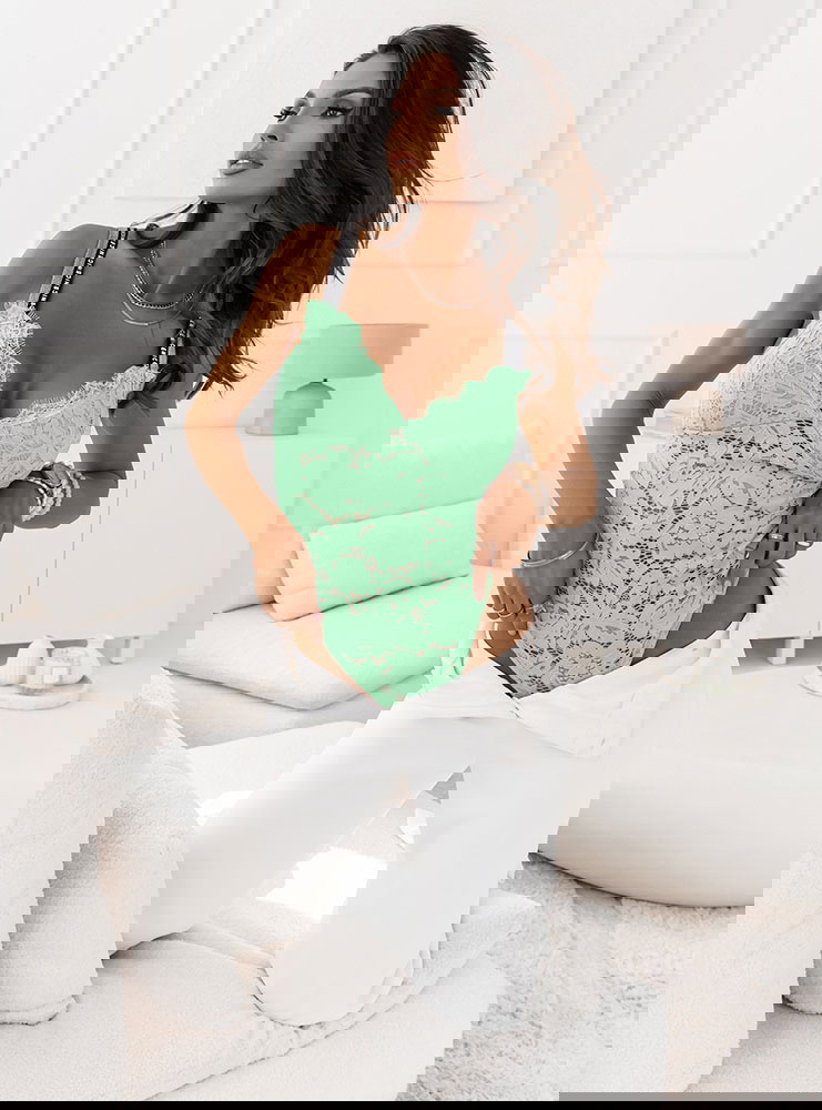 Miętowe koronkowe body z ozdobnymi ramiączkami Wekiaa super dopasowana propozycja dla każdej kobiety.