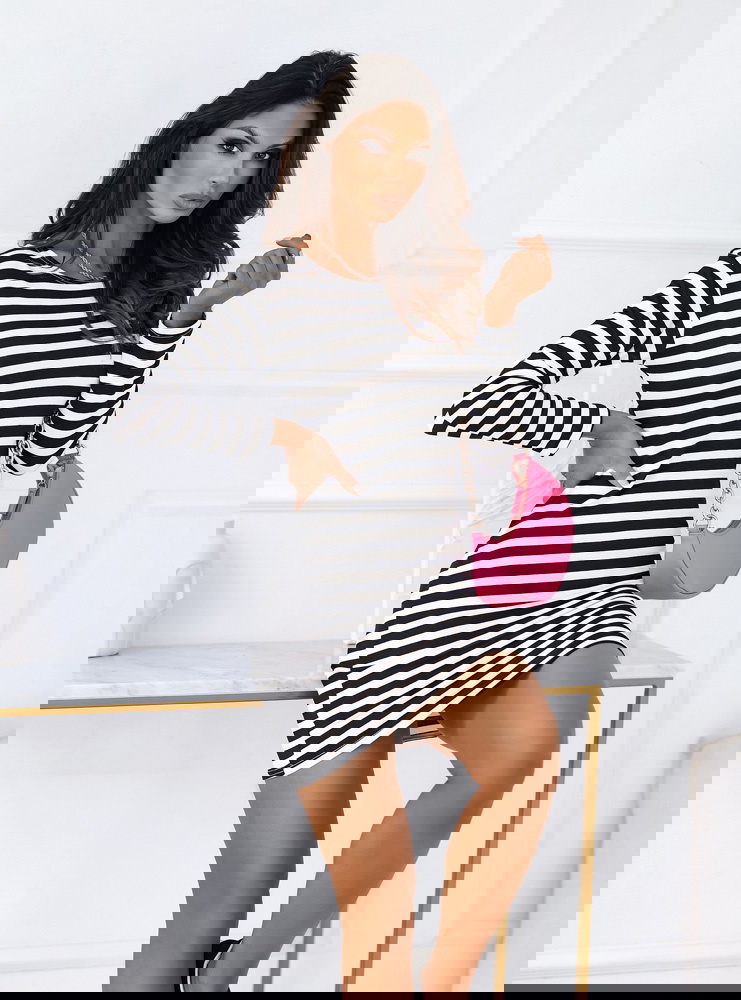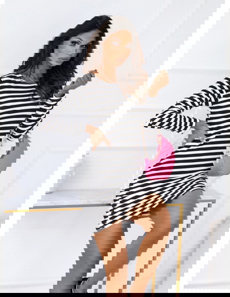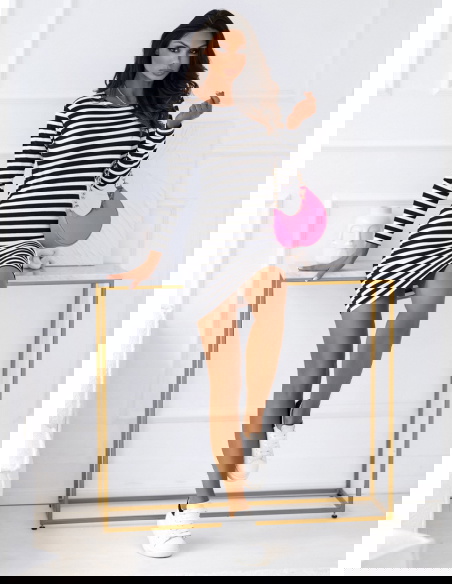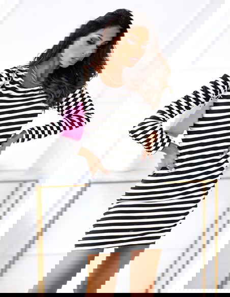 Sukienka w paski z długimi rękawami Augusta - wzór 1 to model który ubierzesz na każdy dzień. Bądź sexy już dziś.
