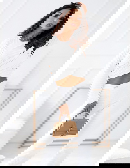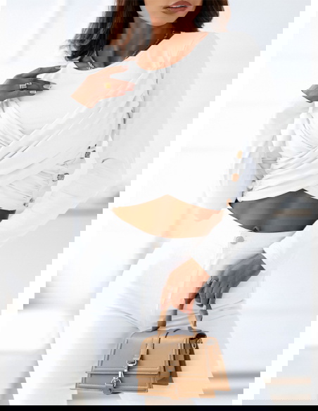 Biała bluzka z przekładanym dekoltem i guzikami Kattilla
