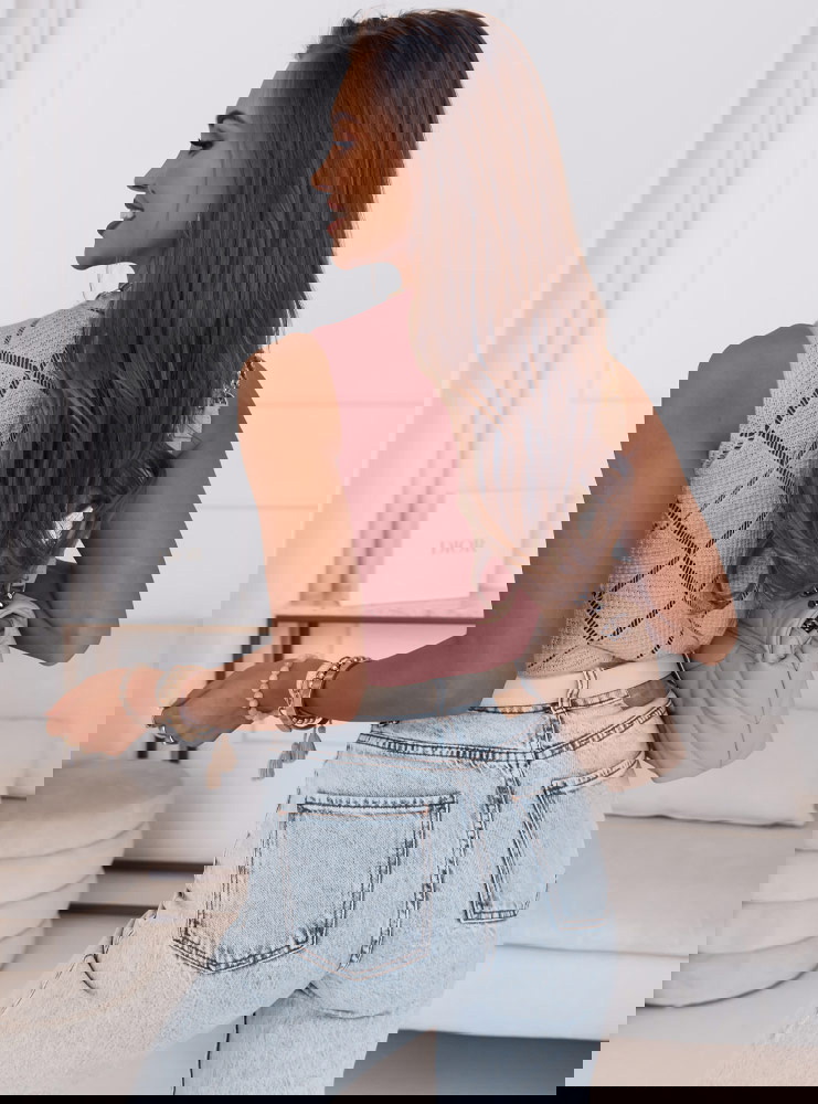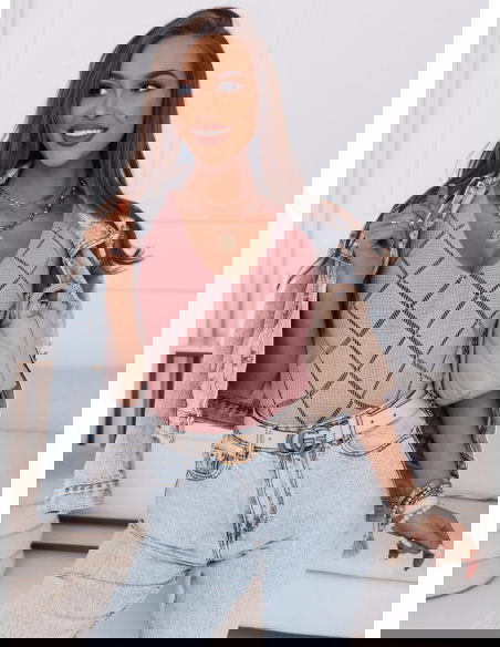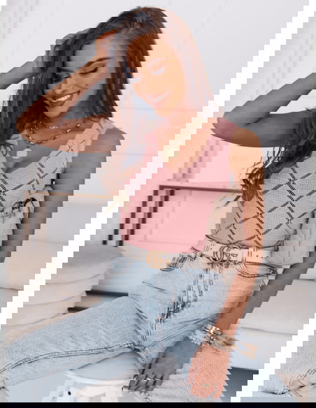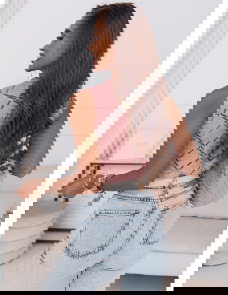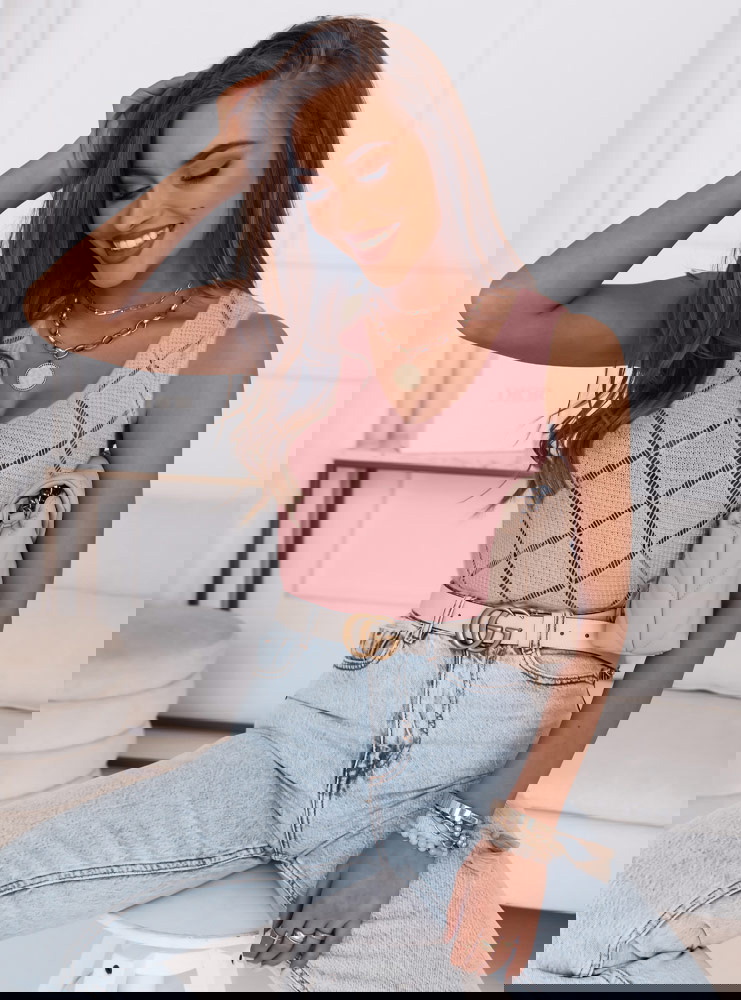 Pudrowa sweterkowa bluzka na ramiączkach Shaarlee fajna bluzka to zawsze super rozwiązanie do spodni czy legginsów, stwórz swoja ulubiona stylizację.