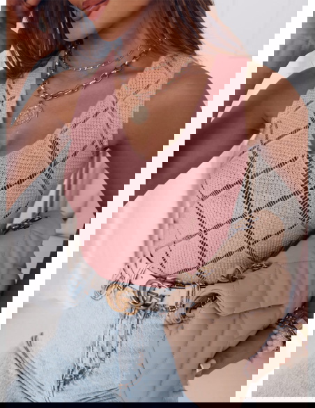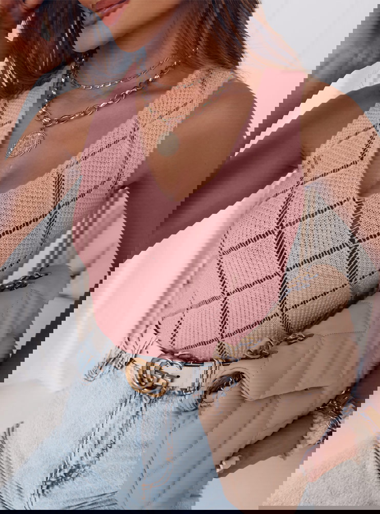 Pudrowa swetrowa bluzka na ramiączkach Shaarlee