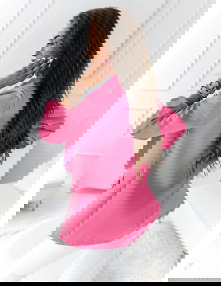 Różowa marynarka z marszczeniami na rękawach Carrina