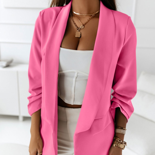 Różowa marynarka z marszczeniami na rękawach Carrina to model który występuje w wielu kolorach . Wybierz jeden z wielu i stwórz stylizacje które wyróżnią Cię z tłumu .