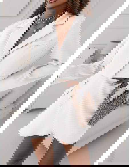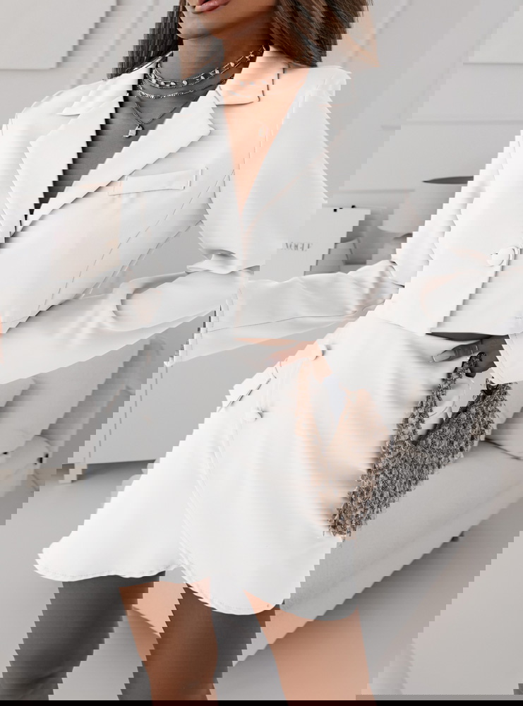 Biały garnitur ze spódniczką i krótszą marynarką Izoldaa
