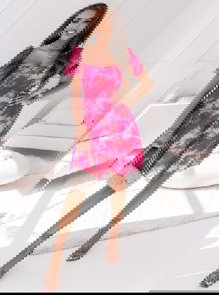 Sukienka w przepięknym wzorze idealnie się nadająca na nadchodzące lato. To zdecydowanie najlepszy wybór na uzupełnienie swojej letniej garderoby w piękną koktajlowa sukienkę na nadchodzące ciepłe dni.
