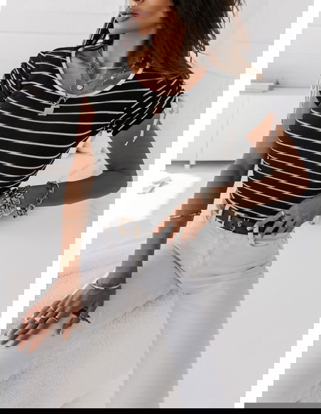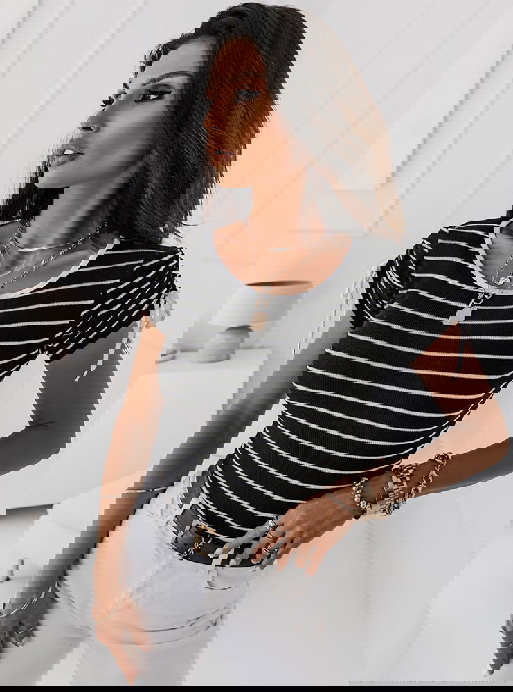 Czarna prążkowana bluzka w paski Sylien - wzór 1 -
