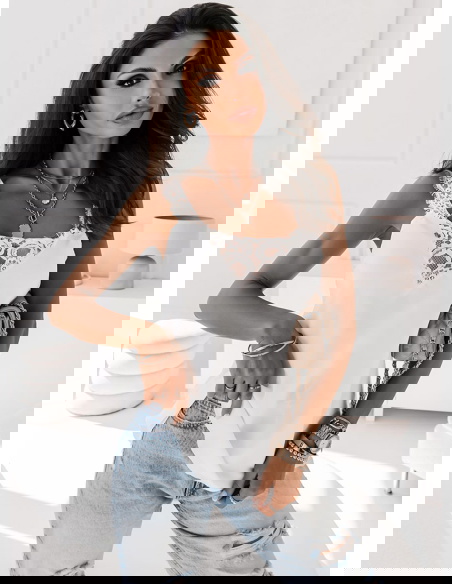 Biała bluzka na koronkowych ramiączkach Odeta wyjątkowa propozycja na każdą okazję jak i bez okazji, koniecznie powinnaś ją mieć.