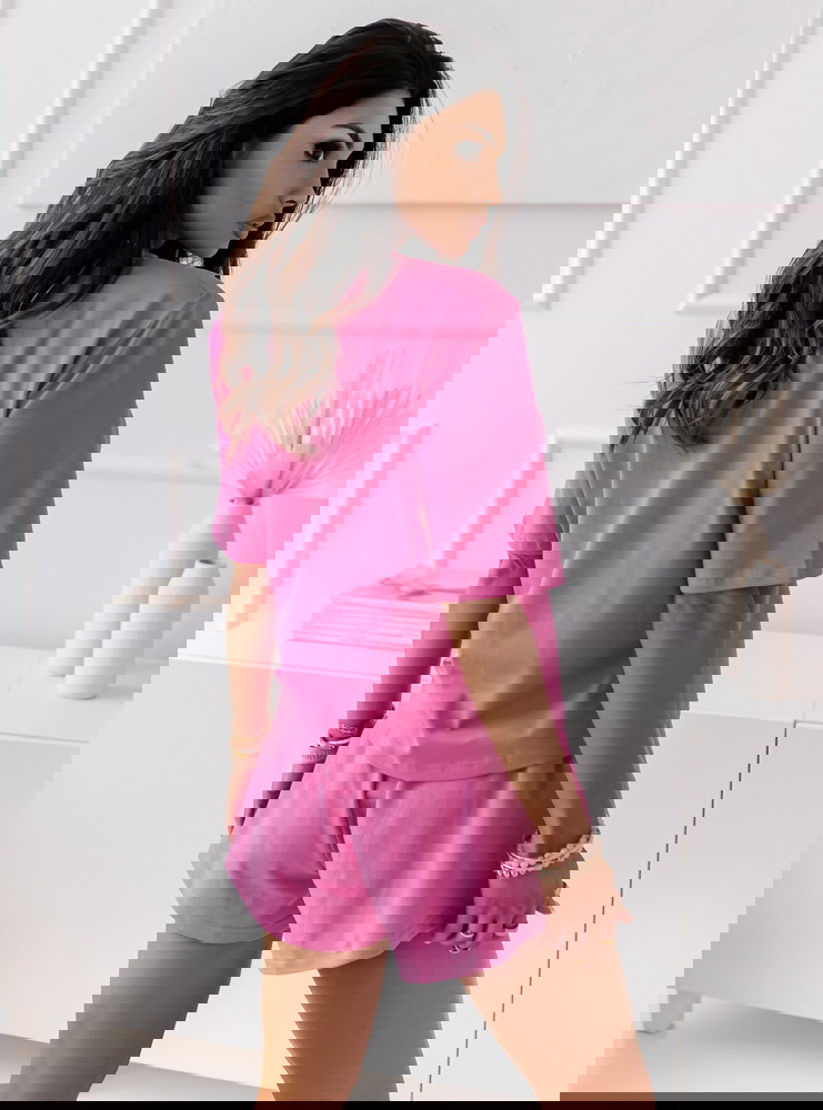 Komplet dresowy bluzka + szorty Asimaa - fuksja będziesz go mogła śmiało ubrać na spacer, na rower czy nawet siłownie.