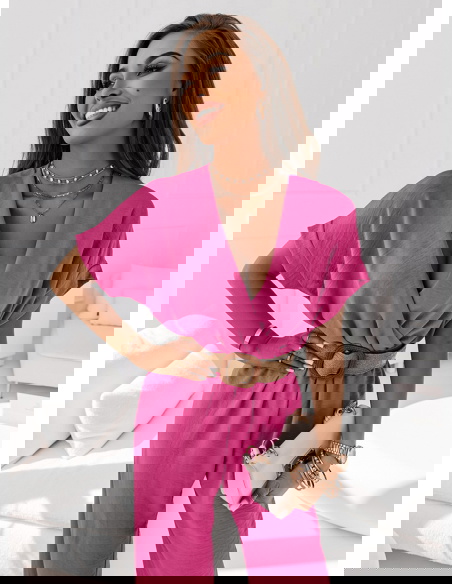 Przekładany kombinezon z długimi nogawkami Shian - fuksja