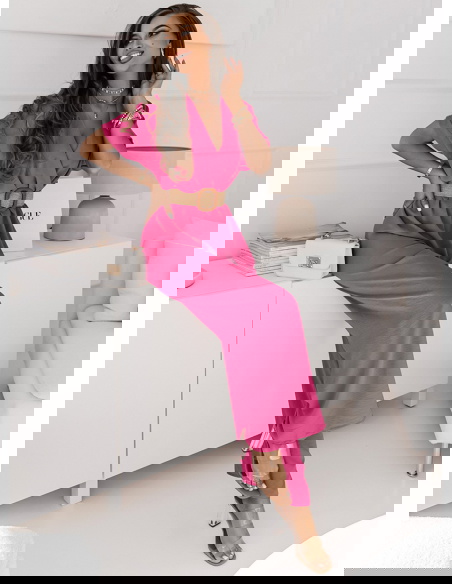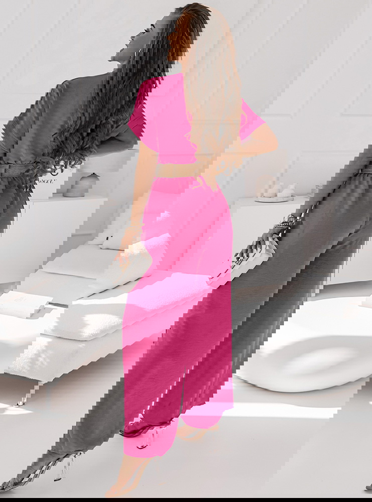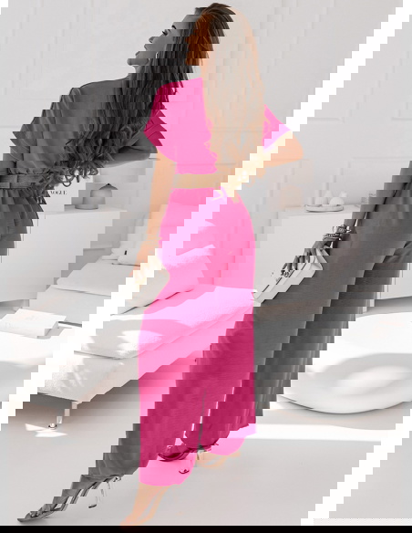 Idealna opcja na każdą okazję.Nasz komplecik jest w przepięknym kolorze fuksji, możesz go nosić przez cały rok i właśnie to jest fajne. Szerokie nogawki bardzo fajnie się prezentują.