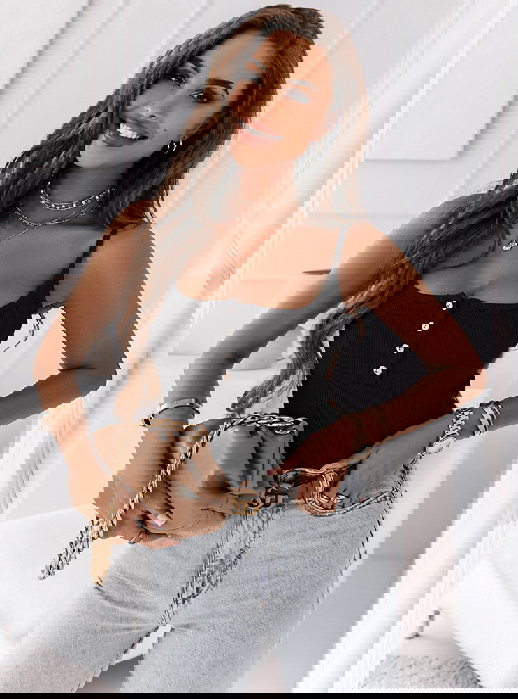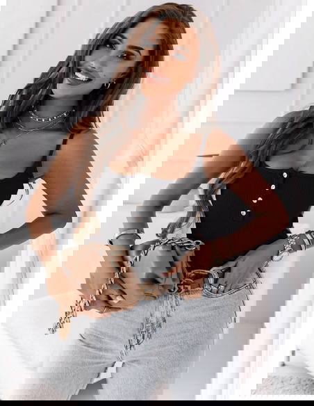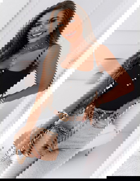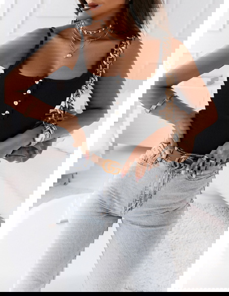 Czarna prążkowana bluzka na ramiączkach z guzikami Sallien