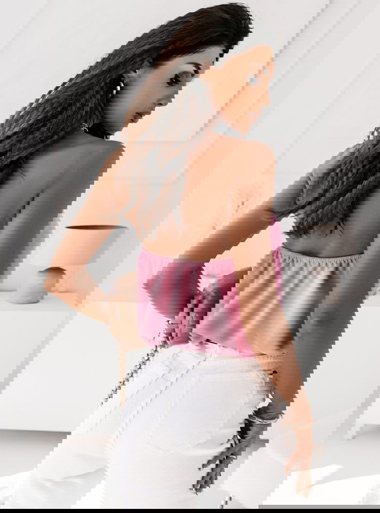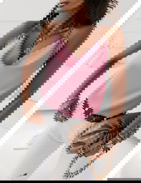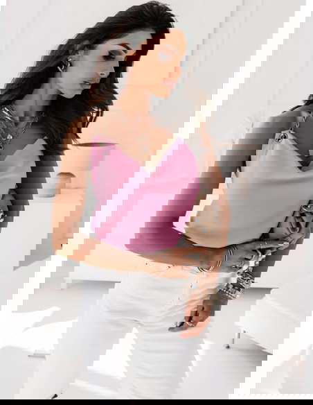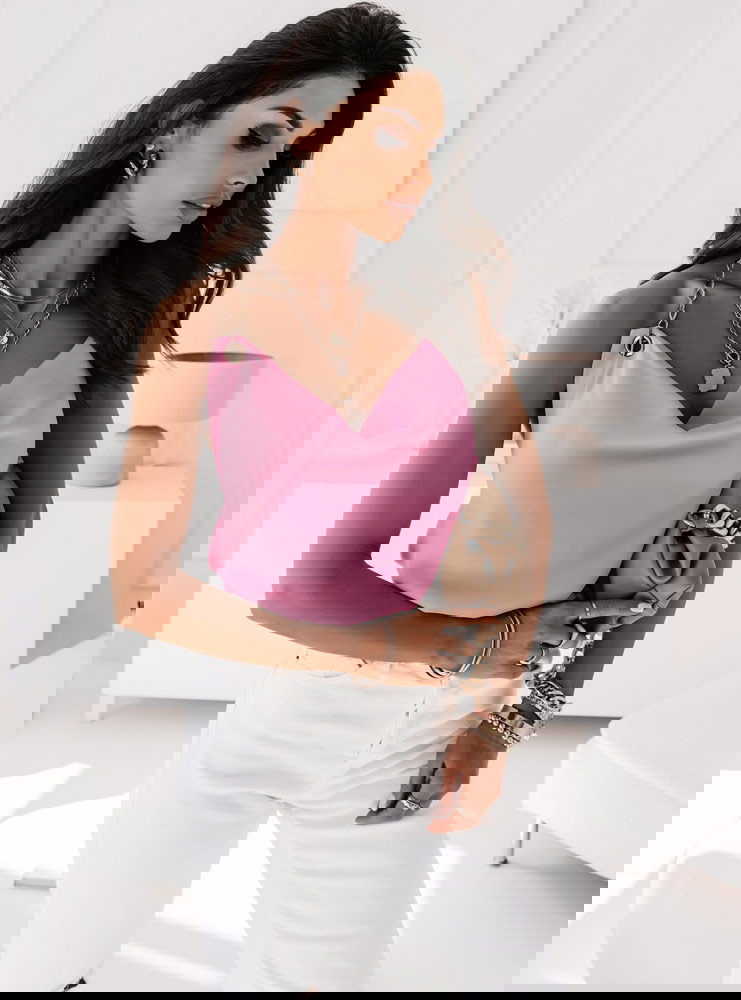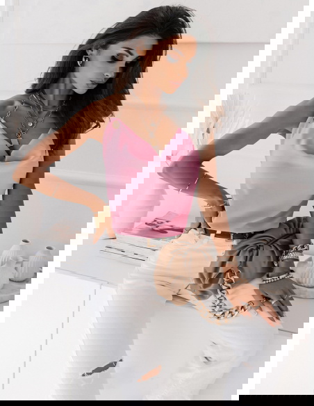 Pudrowa bluzka z łańcuszkiem Tazzlaa to wyjątkowa propozycja dla każ∂ej kobiety, która lubi taki styl i już wie z czym ją wystylizuje.