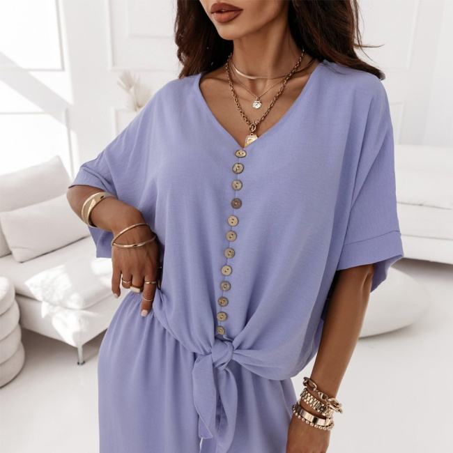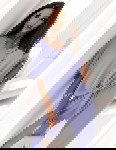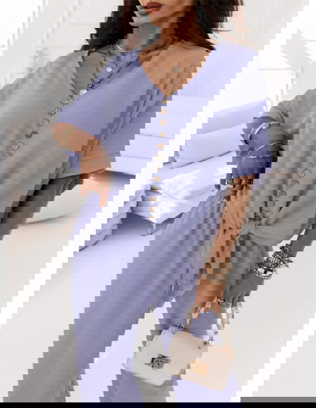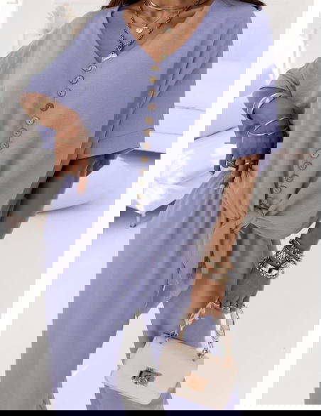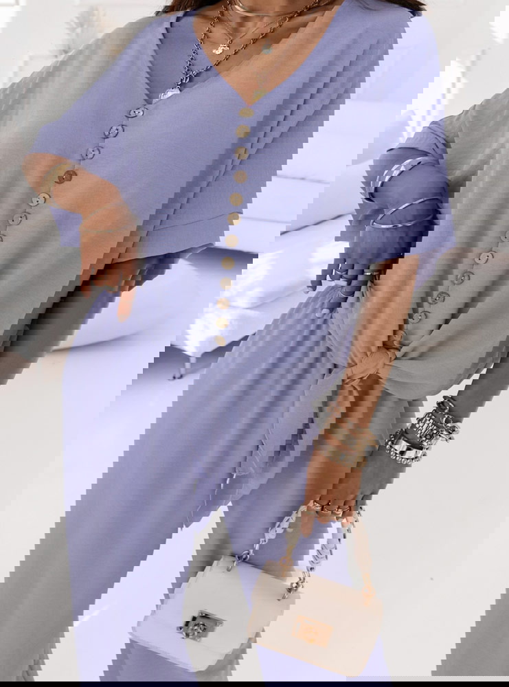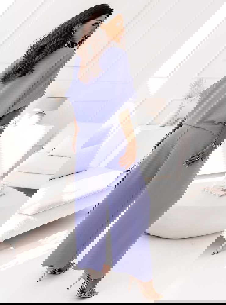 Liliowy komplet bluzka + szerokie spodnie Ankee