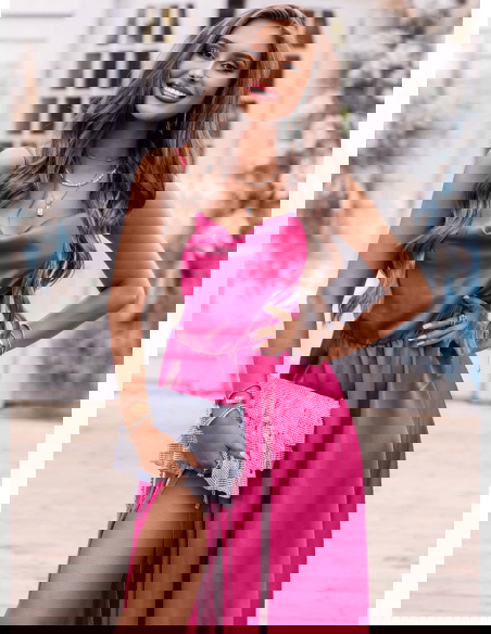 Satynowa sukienka z rozcięciem Cezza - fuksja