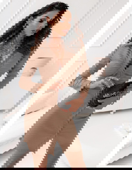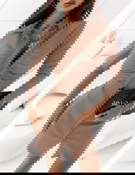 Sukienka w modnych odcieniach brązu, sprawi, że poczujesz się w niej niesamowicie kobieco. Sukienka po całości zapinana jest na guziki. Głęboki, marszczony dekolt uwydatni kobiece atuty. Kołnierzyk doda sukience elegancji. Pasuje do wielu modnych stylizacji.