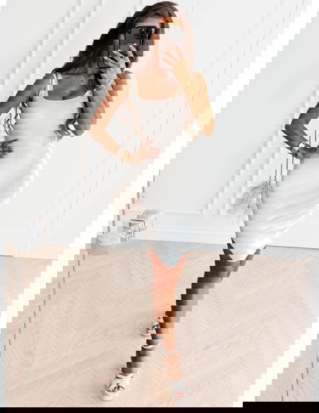 Piękna dopasowana sukienka którą będzie świetnym rozwiązaniem na nie jedną okazje jak i do chodzenia na codzień. Jasny kolor idealnie podkreśli twoje opalone ciało a dopasowany krój sukienki podkreśli twoją zgrabną figurę.