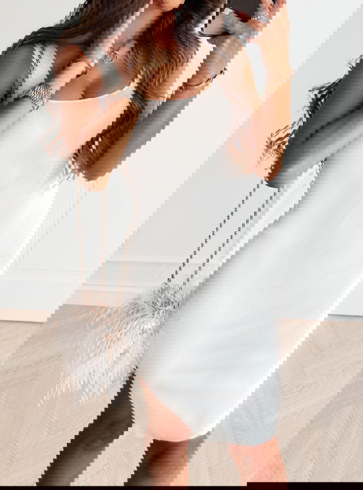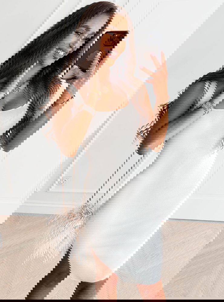 Dopasowana prążkowana sukienka Histel - ecru piękna sukienka z której będziesz napewno zadowolona. Nie może takiej zabraknąć u Ciebie w szafie!