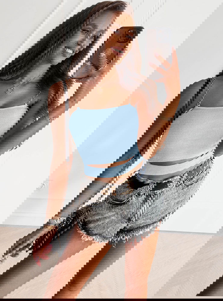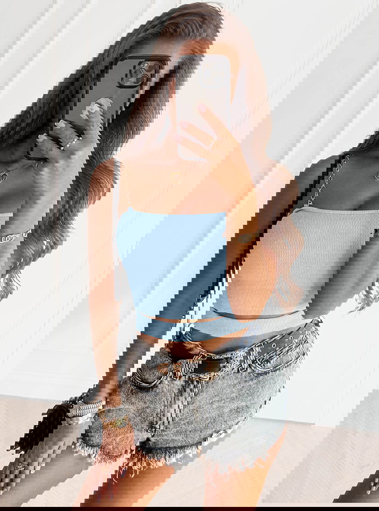 Błękitny prążkowany top na ramiączkach Kenedy piękny top to idealna propozycja na uzupełnienie swojej letniej garderoby. Będziesz z niego napewno zadowolona!