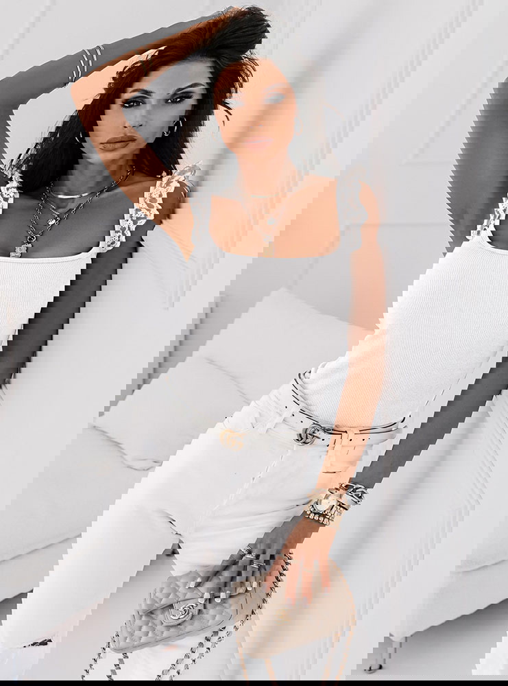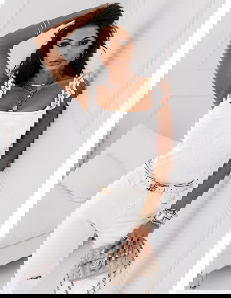 Biała prążkowana bluzka na ramiączkach Idella będzie pięknie wyglądała zarówno z szortami jak i spódniczką. Modna na maxa!
