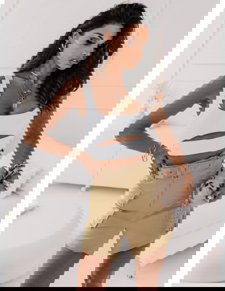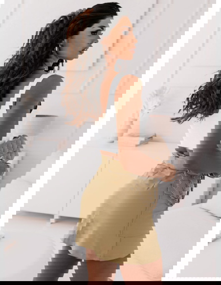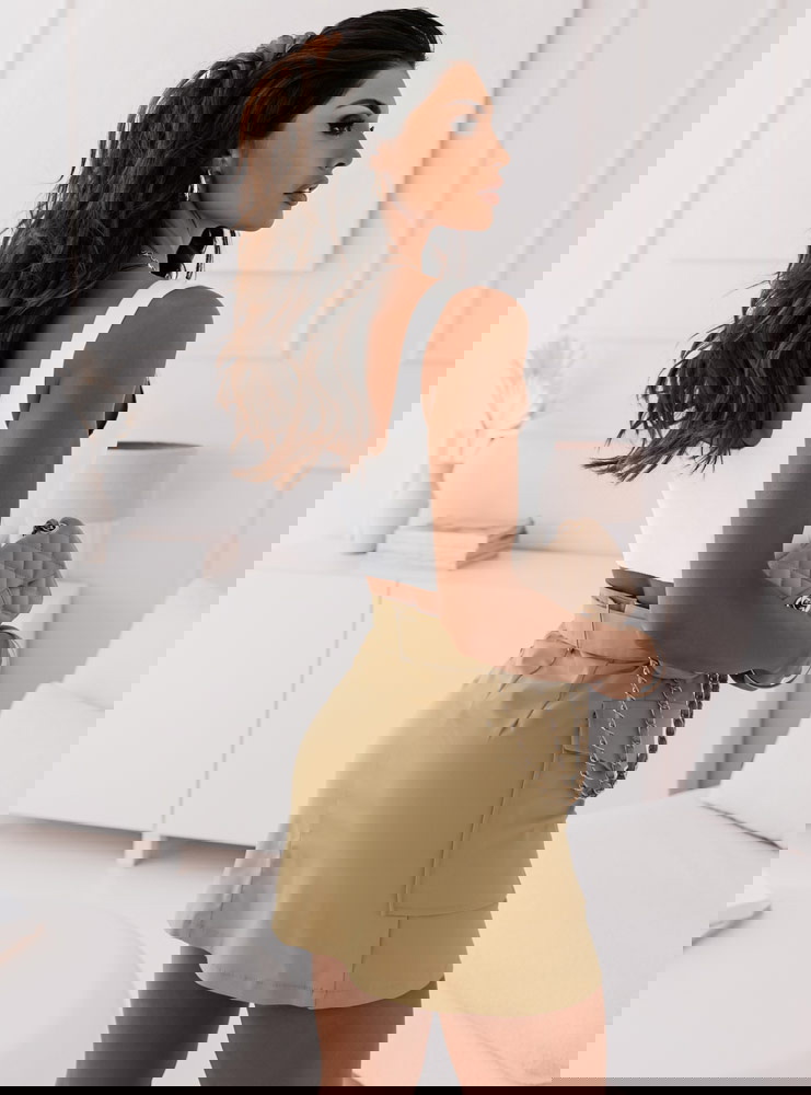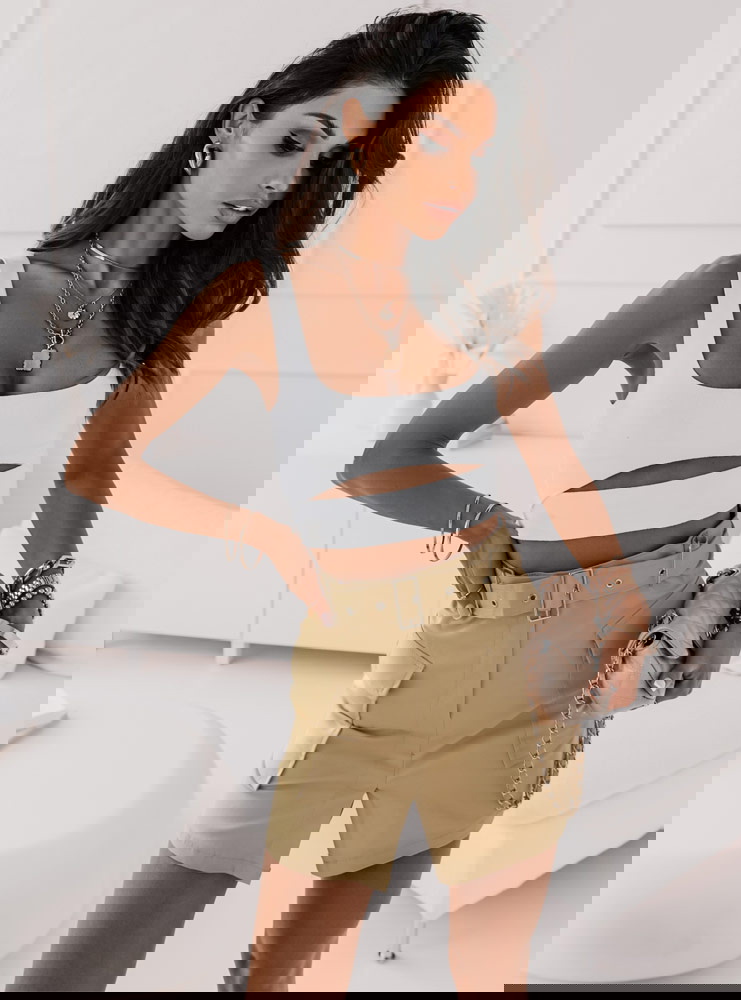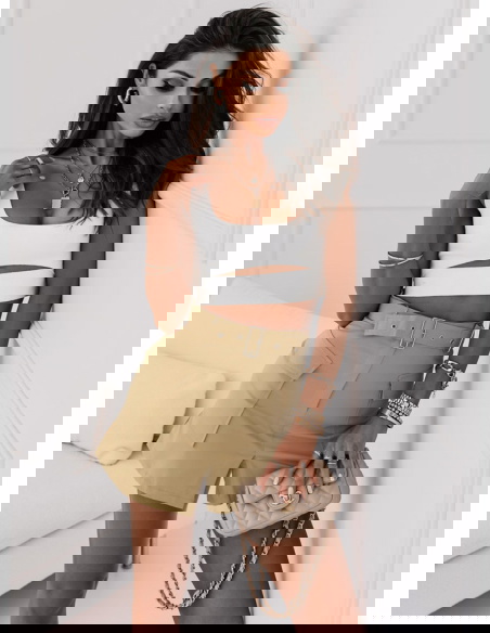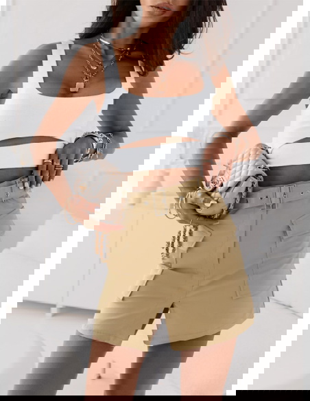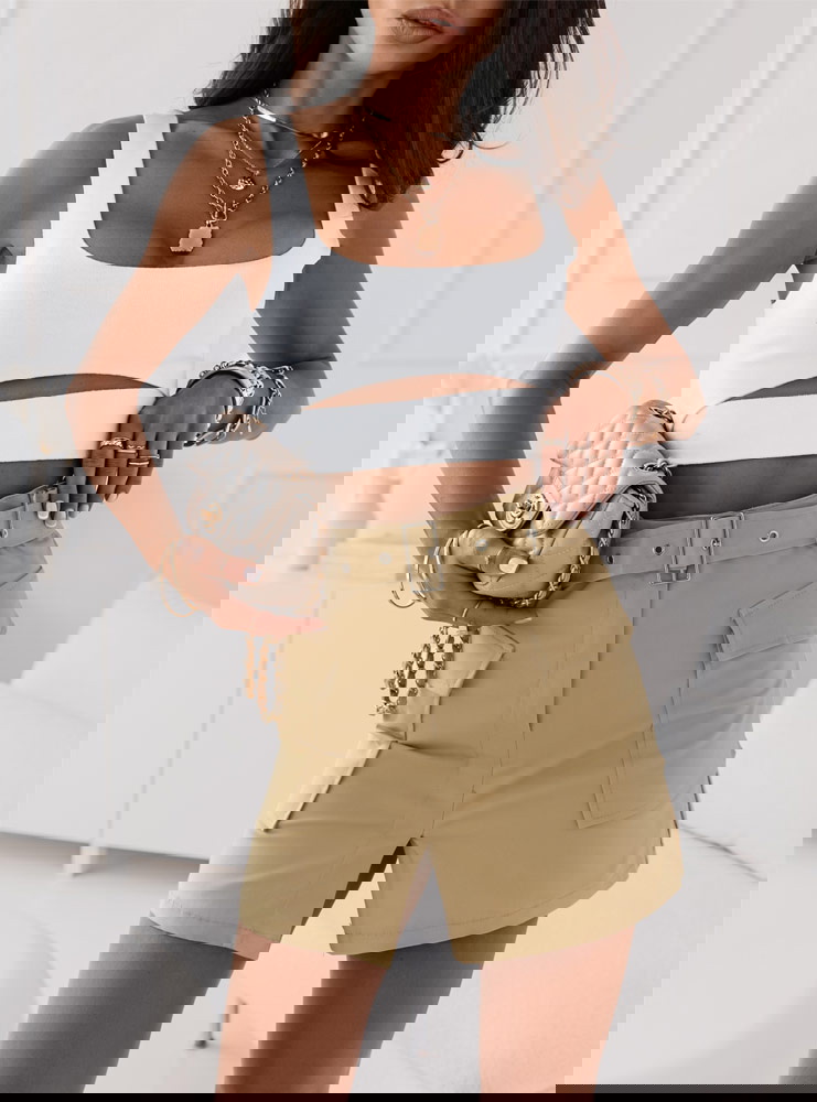 Piękna beżowa spódniczka idealna na cieplejsze dni. Spódniczka posiada pasek który podkreśli twoją talie i duże kieszenie które dodadzą całej twojej stylizacji luźnego looku. Nam najbardziej podoba się w połączeniu z krótki topem.