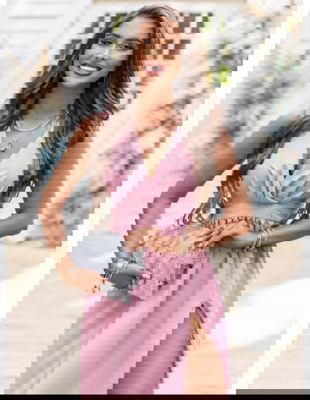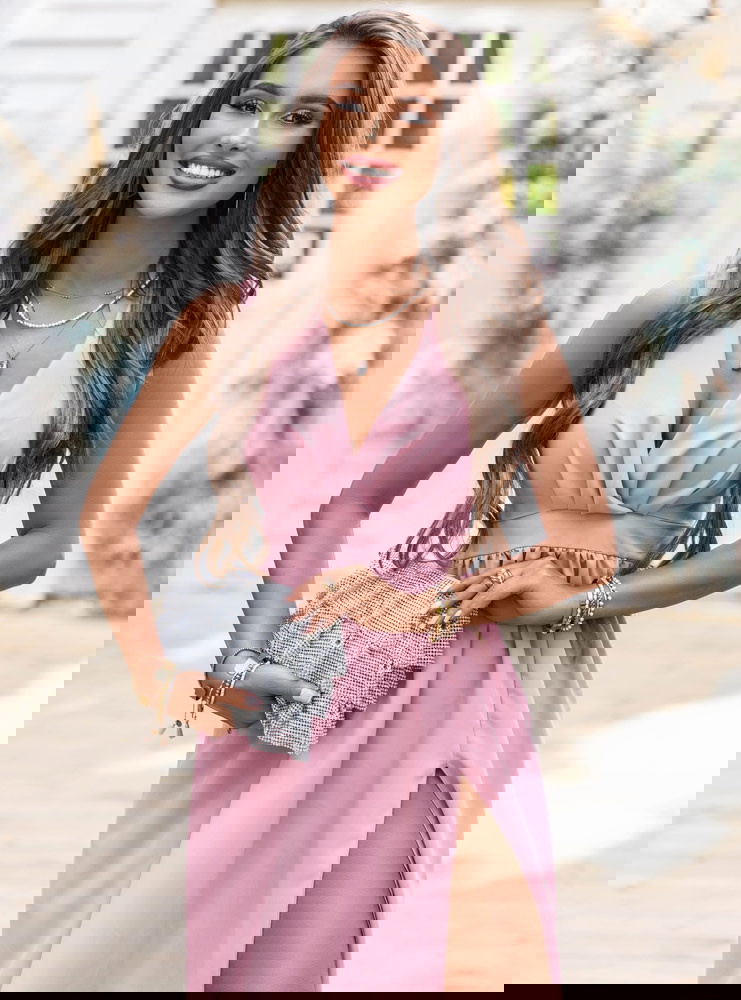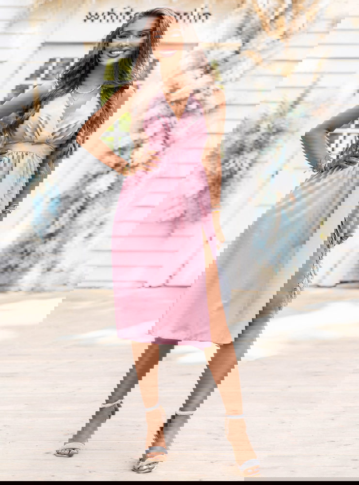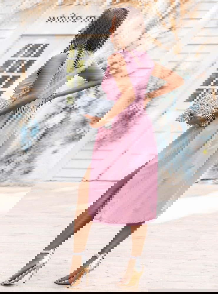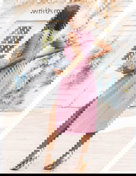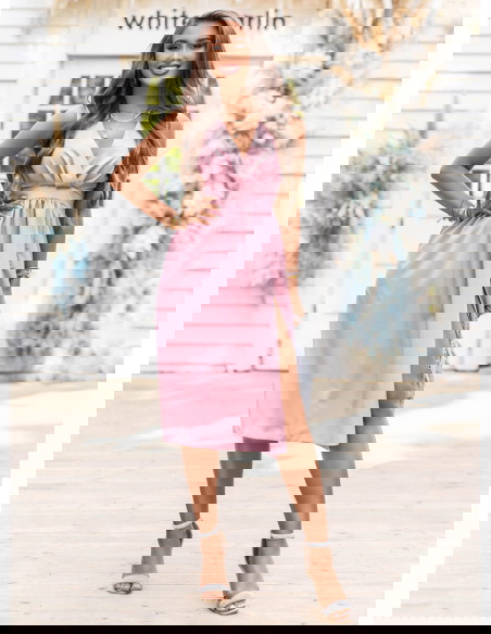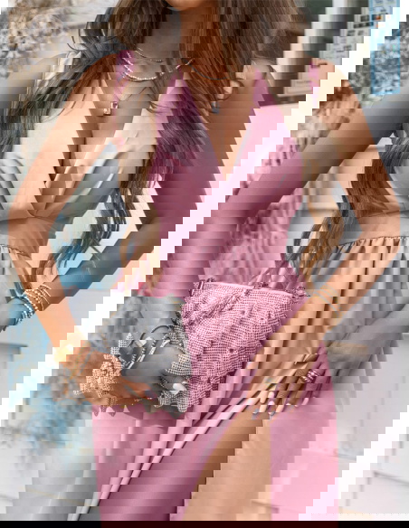Sukienka z głębokim dekoltem Pertikka - brudny róż taka sukienka podkreśli twoją uroda i sprawi że nie będzie można od ciebie oderwać wzroku.