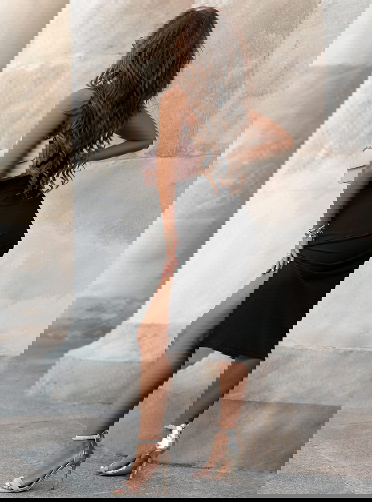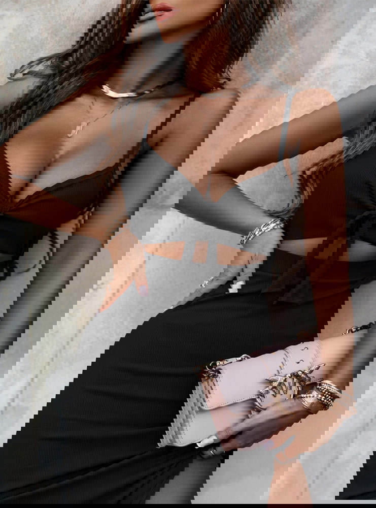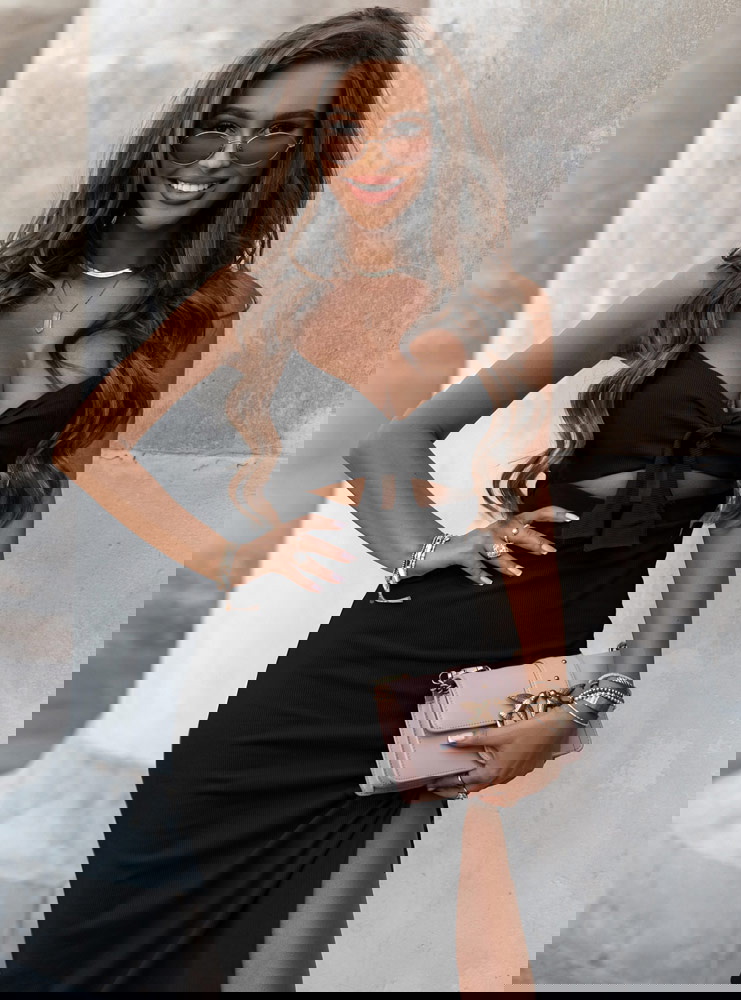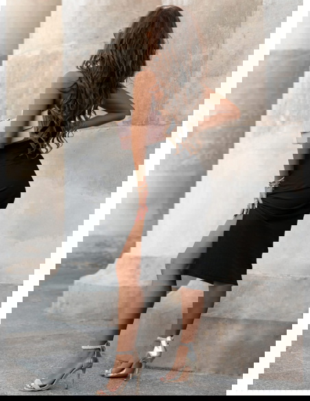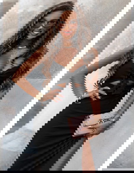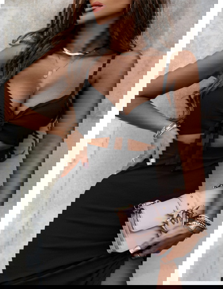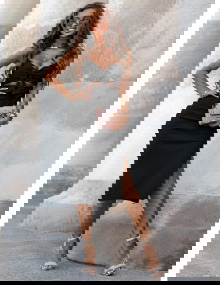 Czarna prążkowana sukienka z wiązaniem na dekolcie Orbea zmysłowy wybór, który dodaje elegancji i subtelnej seksapilu. Modna na maxa!