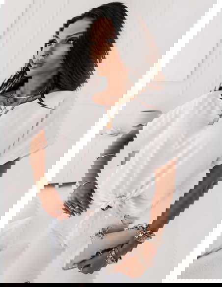 Biała bluzka z ozdobnym wiązaniem Wrkoo
