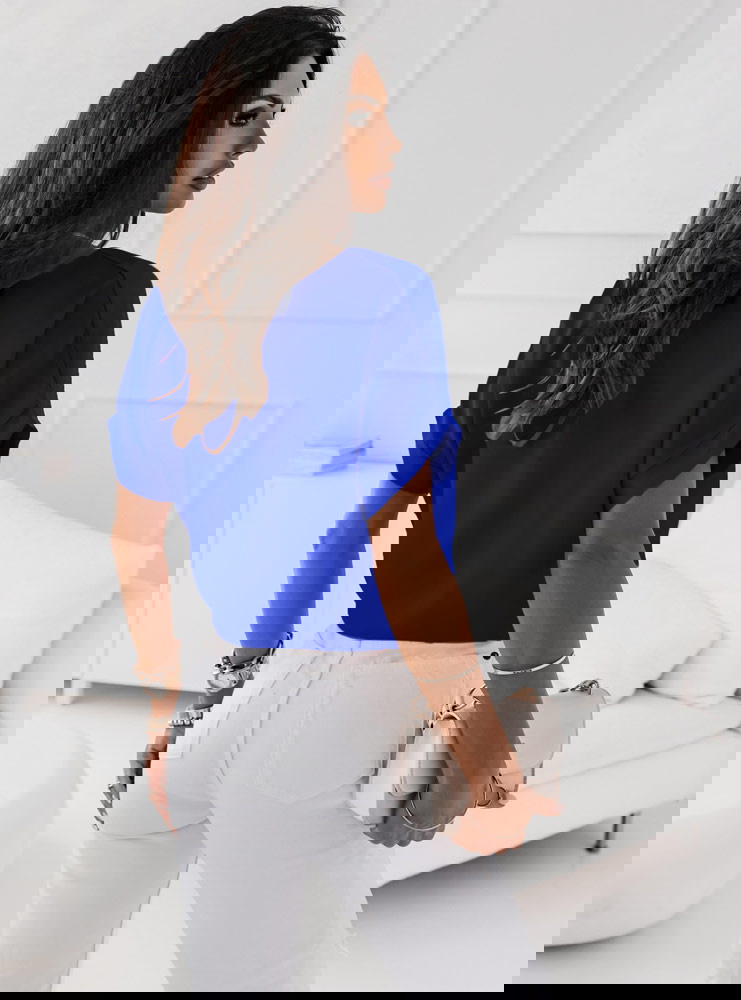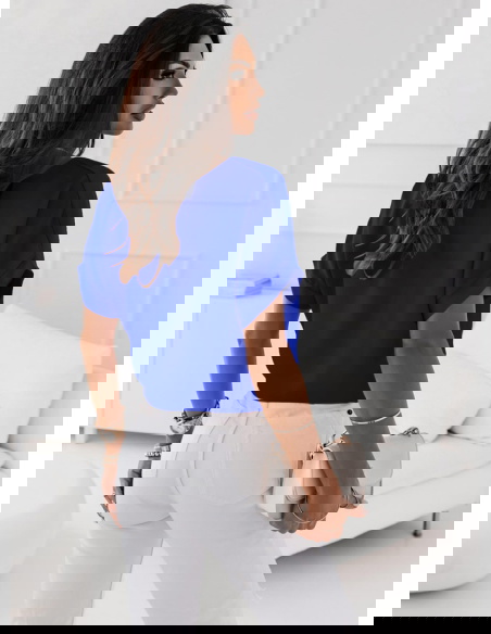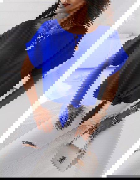 Chabrowa bluzka z ozdobnym wiązaniem to wybór dla osób poszukujących eleganckiego i wyrafinowanego looku. Kolor chabrowy nadaje bluzce głębi i luksusowego wyglądu. Chabrowa bluzka z ozdobnym wiązaniem jest idealna na wieczorne wyjścia i specjalne okazje, gdzie chcesz zaprezentować swoją elegancję i pewność siebie. Dzięki wyjątkowemu połączeniu koloru i wiązania, bluzka dodaje stylowej oprawy każdej stylizacji.