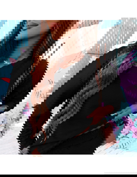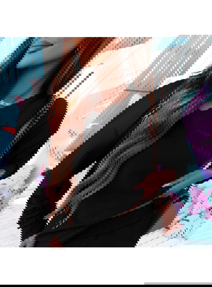 Czarny komplet dresowy bluza + spodnie Nenkka to niezwykle stylowa i wygodna propozycja dla miłośników miejskiego luzu i trendowego designu.