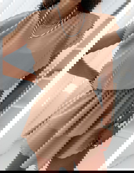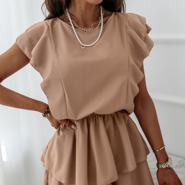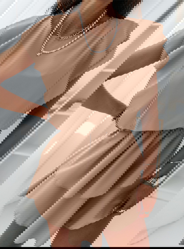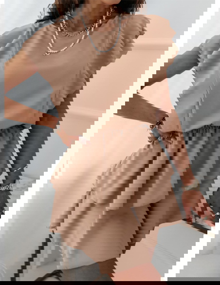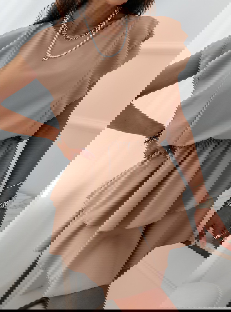 Ciemnobeżowa sukienka z falbankami Solrunn