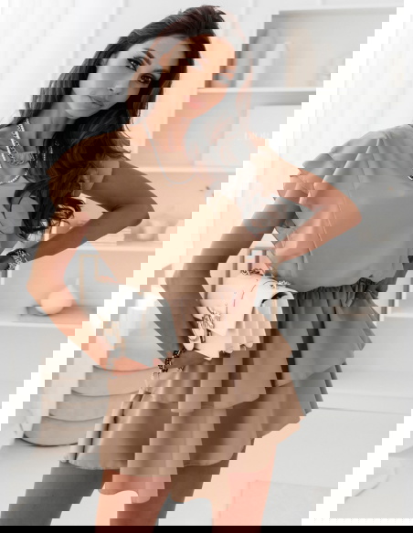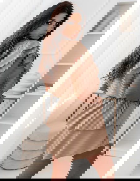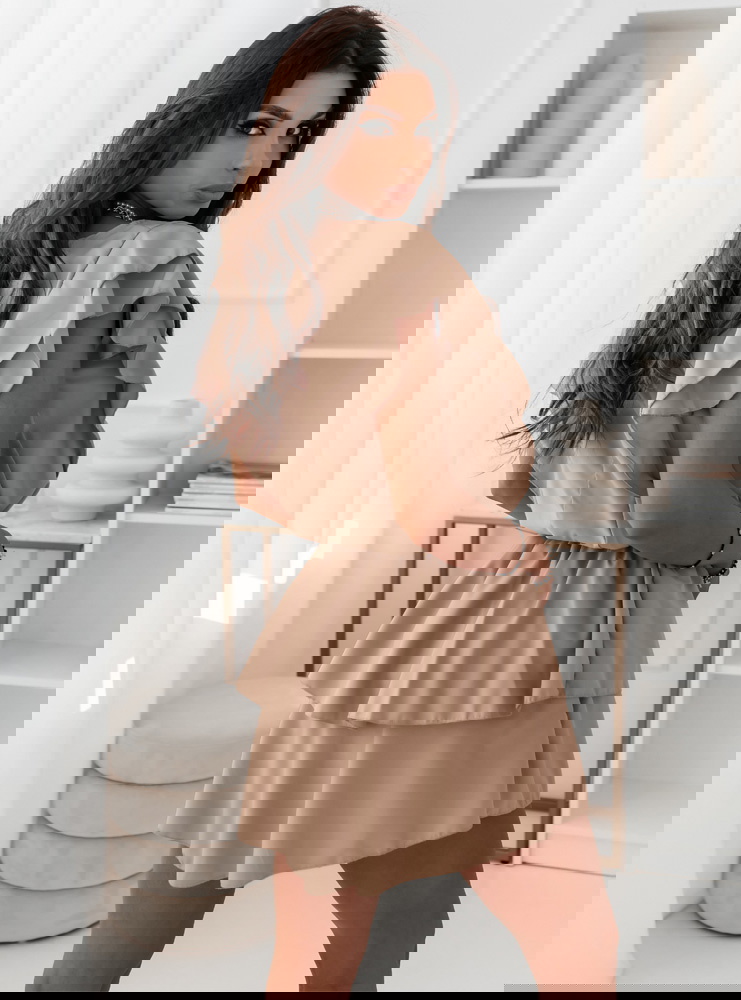Ciemnobeżowa sukienka z falbankami Solrunn to wyjątkowa i elegancka kreacja, która emanuje subtelnością i kobiecym urokiem. Jej klasyczny kolor doskonale komponuje się z falbankowym wykończeniem, które dodaje lekkości i delikatności całej sukience. Wykonana z wysokiej jakości materiałów, sukienka Solrunn jest nie tylko stylowa, ale także komfortowa w noszeniu. Jej dopasowany krój podkreśla figurę, a falbany dodają ruchu i elegancji.