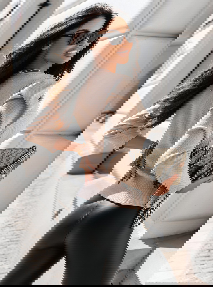 Beżowa prążkowana bluzka z dekoltem w serek i perełkami Tezzma doskonale nadaje się na różne okazje, od bardziej formalnych spotkań po nieco mniej oficjalne wyjścia. Można ją łączyć zarówno z eleganckimi spodniami czy spódnicą na bardziej elegancki look, jak i z jeansami czy spodniami w stylu casual.