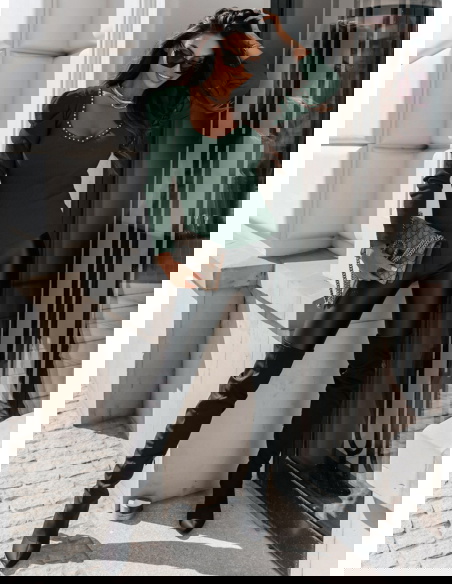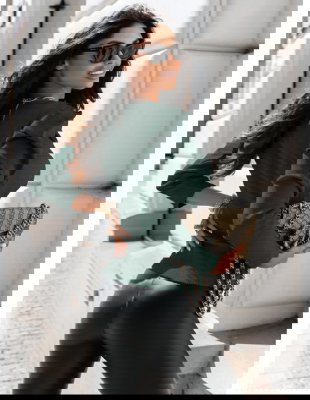 Prążkowana bluzka z dekoltem w serek i perełkami Tezzma w kolorze butelkowej zieleni to wyjątkowy i stylowy element garderoby, który przyciąga uwagę swoim eleganckim wyglądem. Jej kolor nadaje charakteru i klasy, pozwalając na tworzenie zarówno formalnych, jak i bardziej casualowych stylizacji. Dekolt w serek eksponuje delikatnie szyję, dodając bluzce kobiecego i subtelnie zmysłowego akcentu.Efektowne perełki na dekolcie to wyrazisty detal, który podkreśla wyjątkowość bluzki Tezzma. Dzięki nim staje się ona nie tylko elegancka, ale także unikalna i odważna w swoim designie.