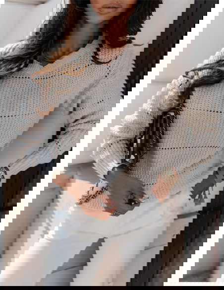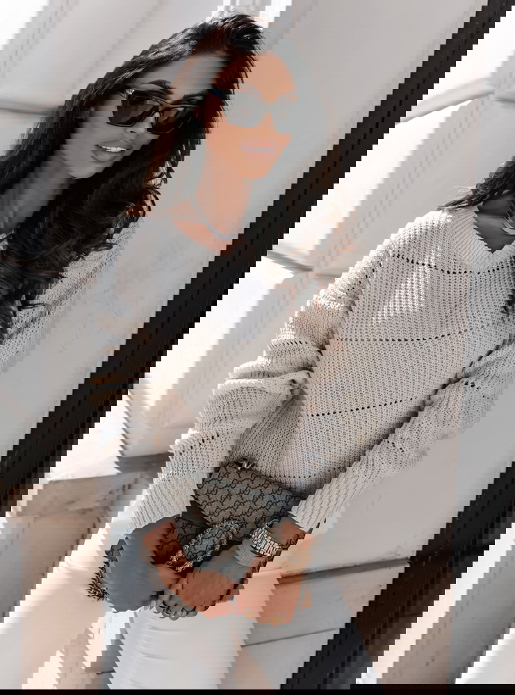 Beżowy sweter z dekoltem V Commkka
