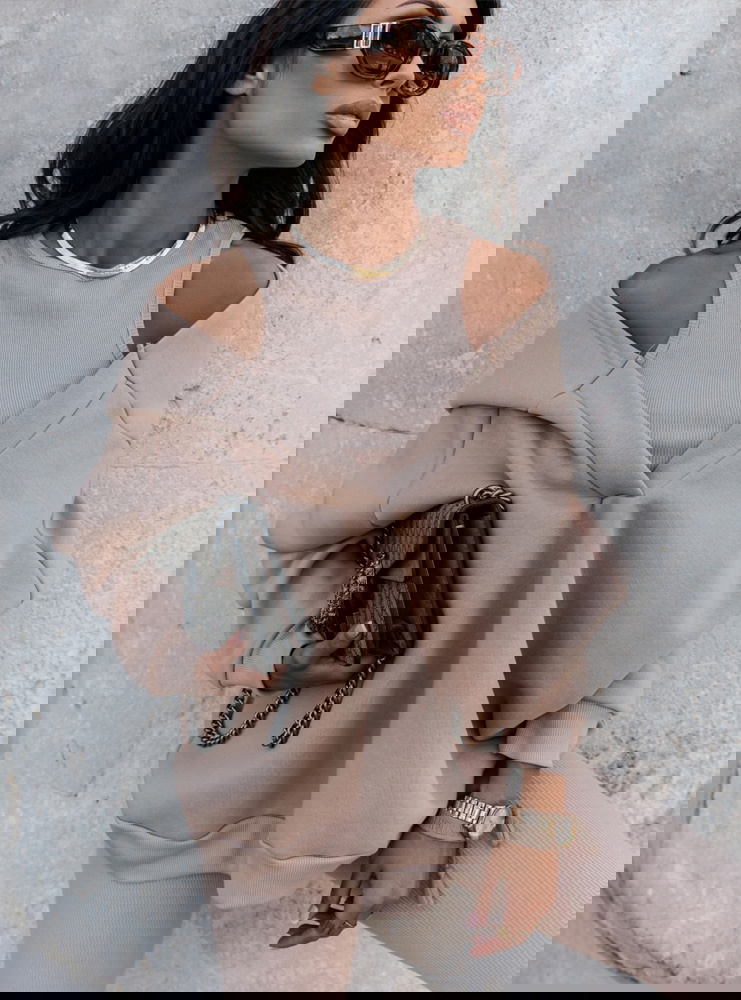 Beżowy 3 częściowy komplet dresowy Jodi to doskonały wybór dla osób, które pragną połączyć wygodę z modnym stylem. Jego minimalistyczny design, miękki materiał i uniwersalny kolor sprawiają, że będzie to idealna opcja dla różnych okoliczności, pozwalając na swobodne eksperymentowanie z różnymi lookami.