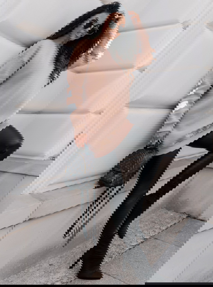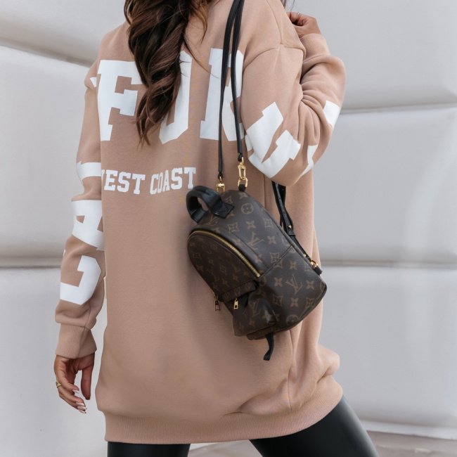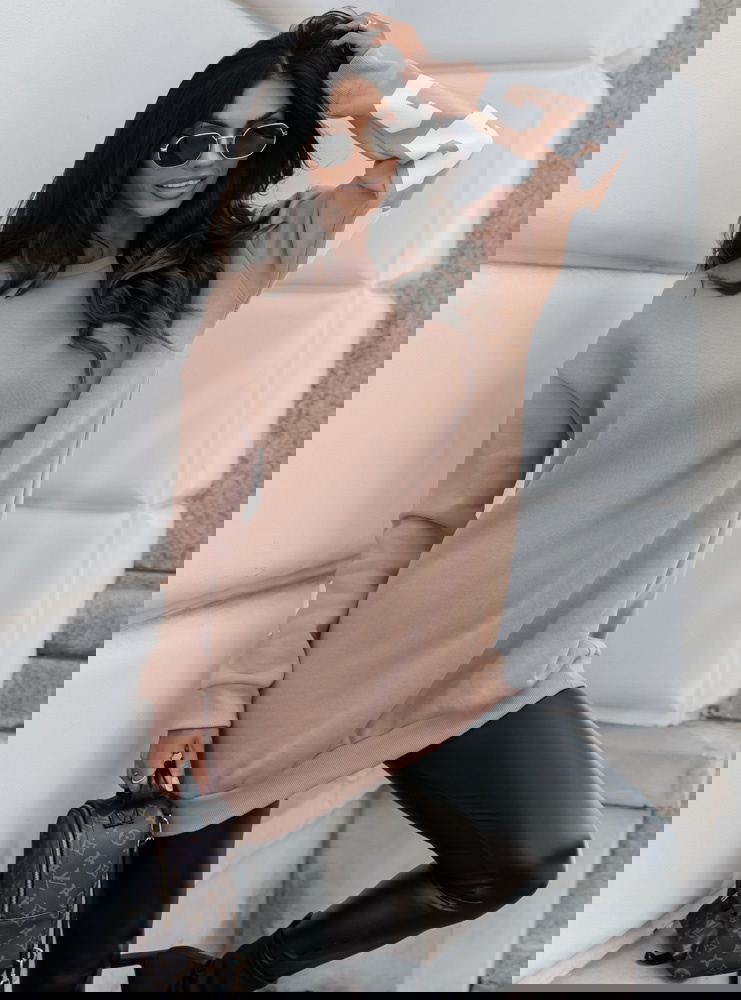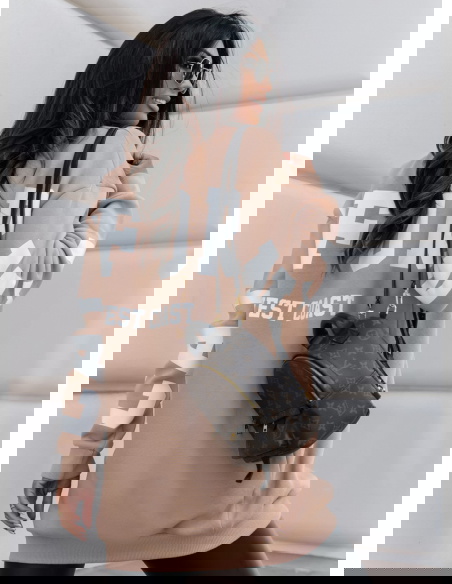 Beżowa długa bluza z napisami Violenna Beżowa długa bluza z napisami to wszechstronny i stylowy element garderoby, który doskonale łączy komfort z modnym designem.