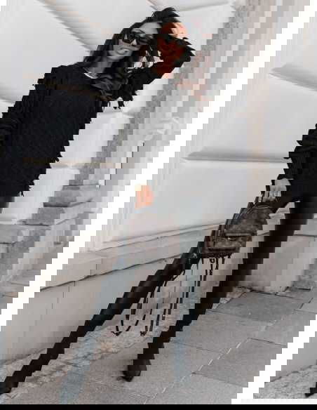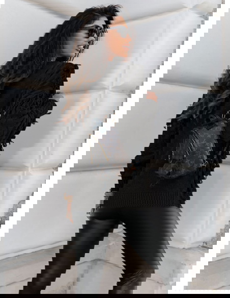 Czarny sweter z ozdobnymi frędzelkami Agathe to elegancki i stylowy element garderoby, który przyciąga uwagę swoim unikalnym wzorem. Ozdobne frędzelki dodają swetrowi charakteru i oryginalności. Wykonany z miękkiego i przyjemnego w dotyku materiału, sweter zapewnia komfort i ciepło podczas noszenia.