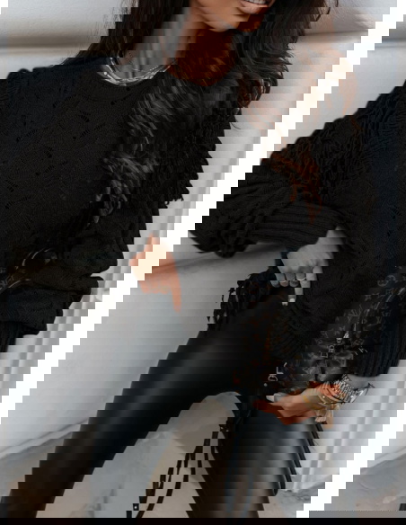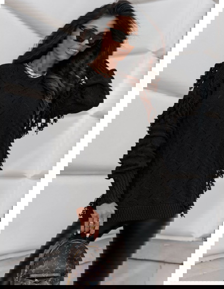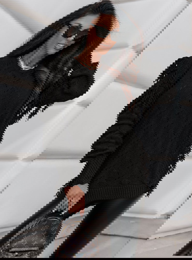 Czarny sweter z ozdobnymi frędzelkami Agathe