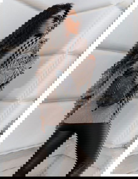 Sweter z ozdobnymi frędzelkami Agathe - odcienie brązu Ten modny sweter doskonale komponuje się ze średnią stylizacją, idealny do noszenia zarówno na co dzień, jak i na specjalne okazje. Wartościowy materiał i staranne wykonanie sprawiają, że jest to nie tylko modny, ale także wygodny i trwały element wykonania.