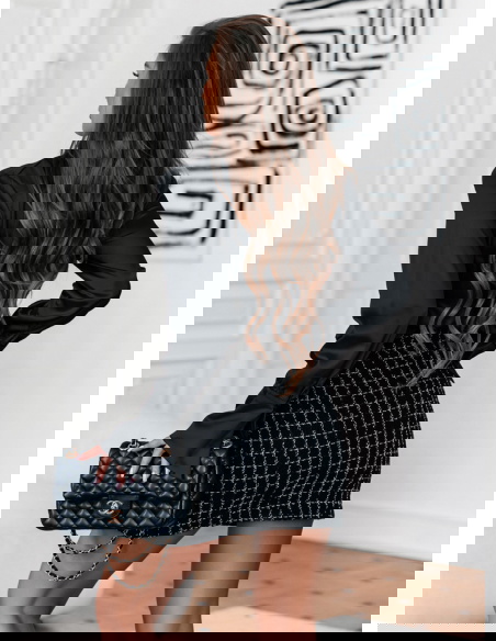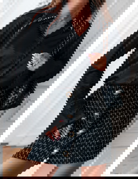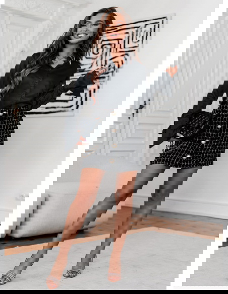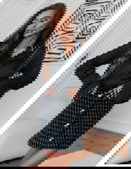 Jej klasyczny design w połączeniu z delikatnymi perełkowymi zdobieniami nadaje koszuli subtelny, ale luksusowy charakter. Czarna satynowa koszula zapinana na guziki z ozdobnymi perełkami na kołnierzu to elegancka i wyrafinowana propozycja dla kobiet ceniących szykowny styl.