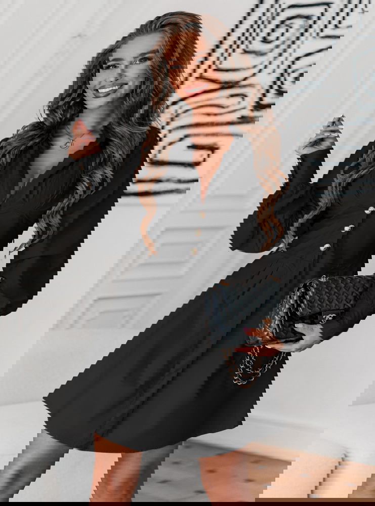 To wyrafinowany i elegancki wybór dla kobiet ceniących klasykę i styl. Jej minimalistyczny design w połączeniu z dopasowanymi guzikami dodaje sukience subtelności i uroku. Dodatkowo, dopasowana talia podkreśla kobiecą sylwetkę, nadając sukience szykownego akcentu.