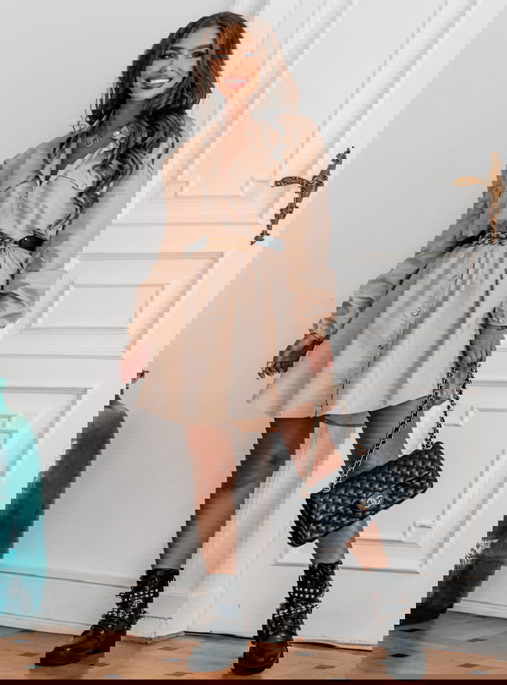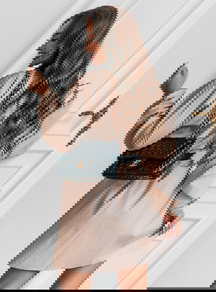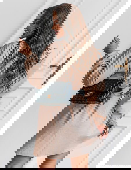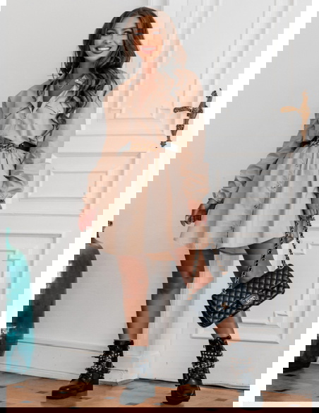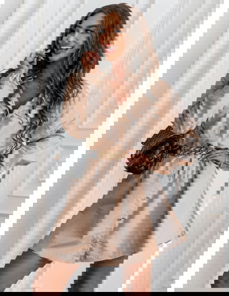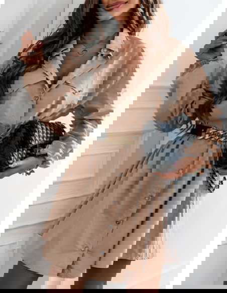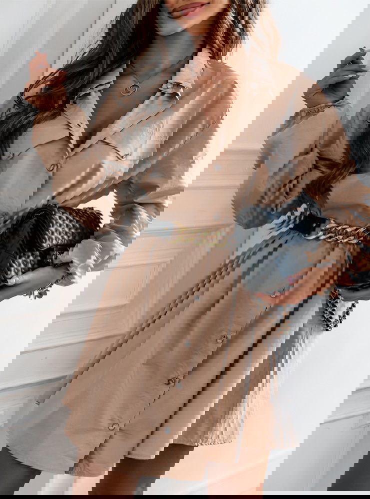 Jasnobeżowa koszulowa sukienka z paskiem Pemello