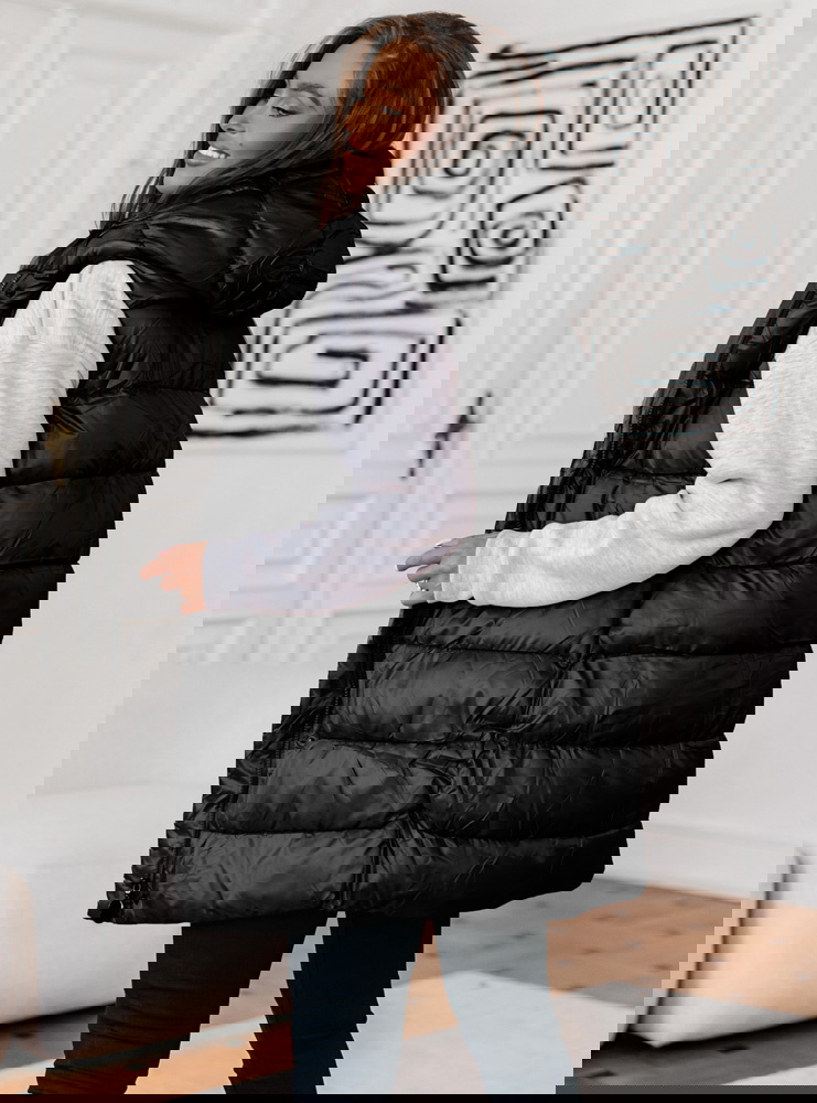Czarna pikowana kamizelka z kapturem Olemikka to stylowy i praktyczny dodatek do garderoby, który idealnie sprawdzi się w chłodniejsze dni. Ta kamizelka łączy w sobie funkcjonalność z modnym wyglądem, co czyni ją doskonałym wyborem dla osób ceniących wygodę i swobodę ruchu.Czarny kolor kamizelki jest ponadczasowy i łatwy do zestawienia z różnymi elementami garderoby. Można ją nosić zarówno jako samodzielny element w letnie wieczory czy wiosną, jak i jako warstwę zimą, np. na sweter czy dłuższą bluzę, aby zapewnić dodatkową ochronę przed zimnem.