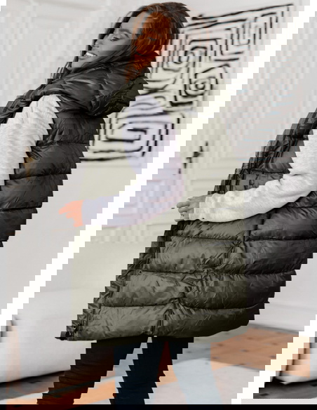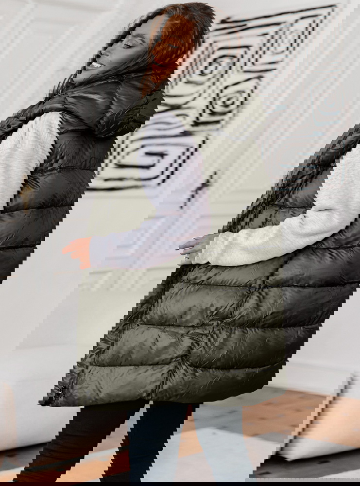 Pikowana kamizelka z kapturem Olemikka - khaki to modny, praktyczny i wszechstronny element garderoby, który dodaje charakteru i stylu twoim codziennym ubraniom. Jest to idealna opcja dla osób ceniących wygodę, modny wygląd i praktyczne rozwiązania w swoim codziennym stylu.