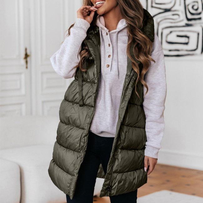 Pikowana kamizelka z kapturem Olemikka - khaki