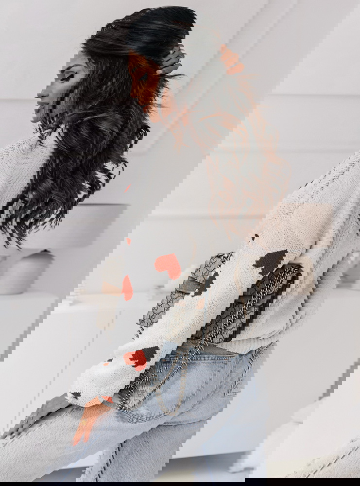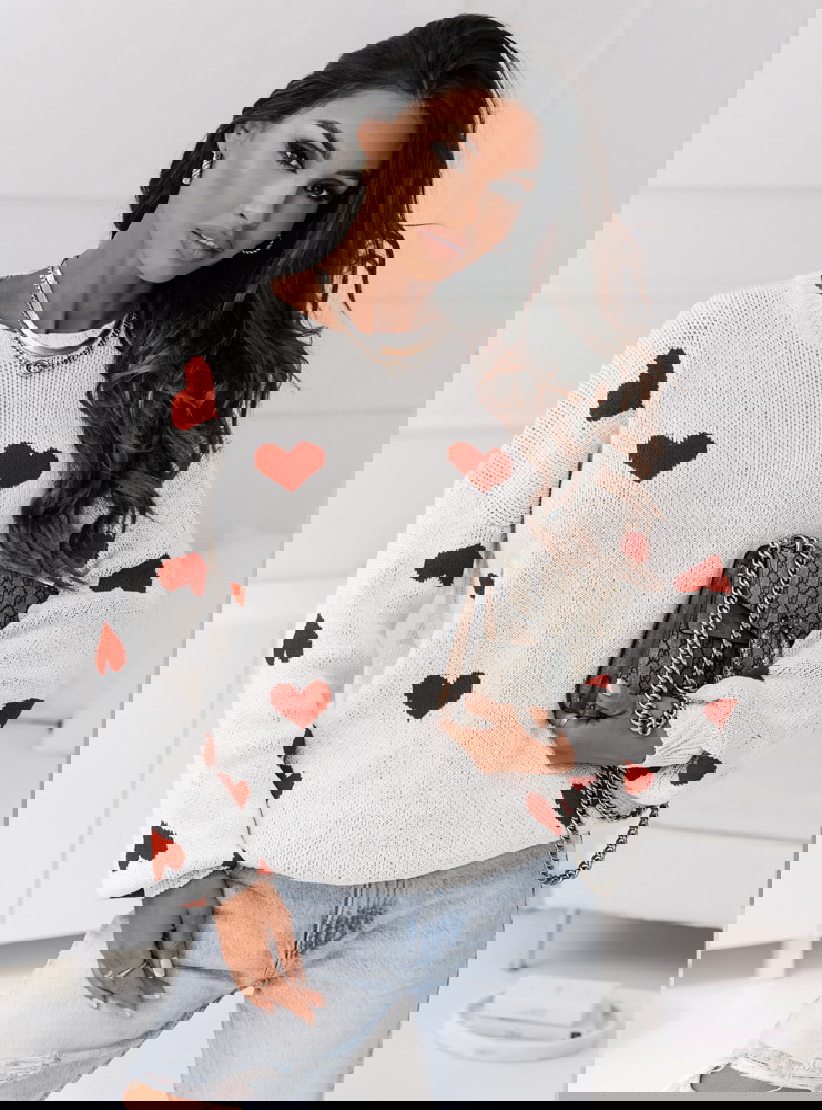 Wzorzysty sweter w serduszka Sivela - wzór 1
