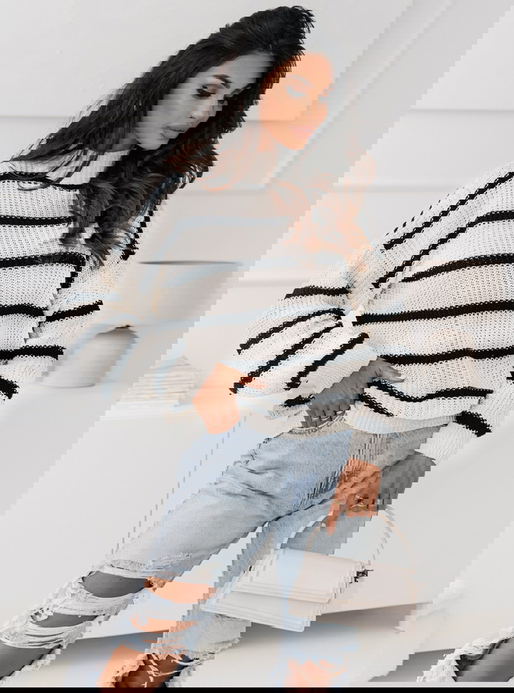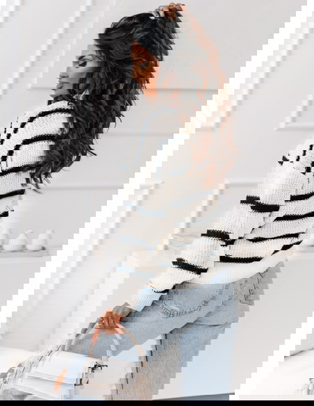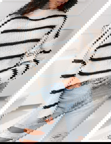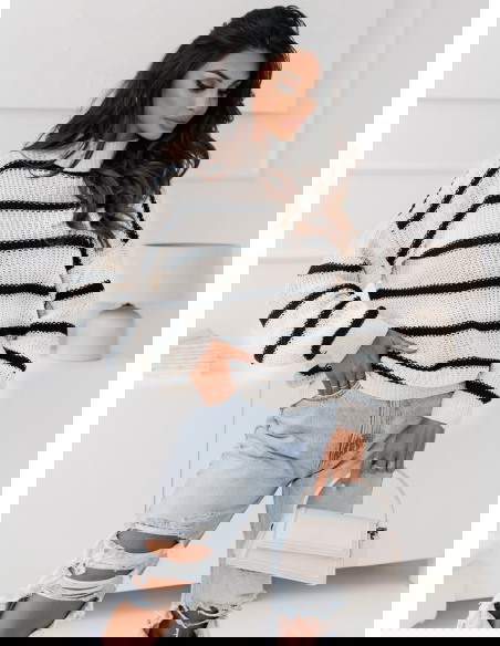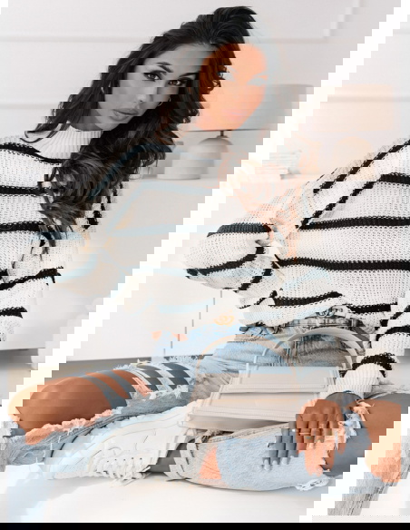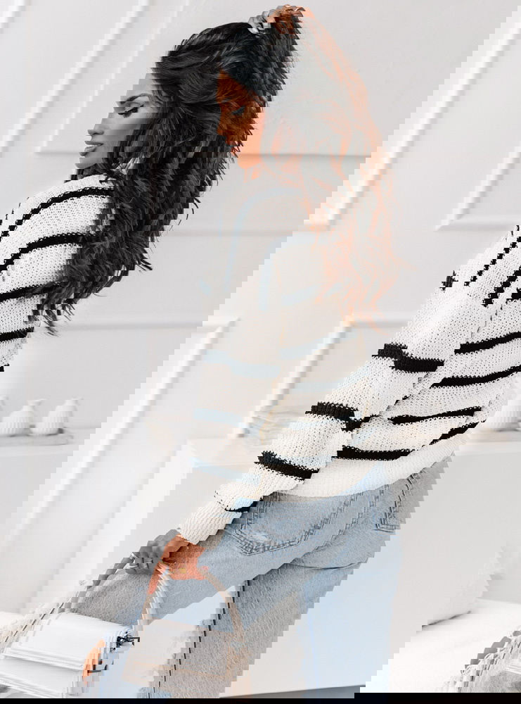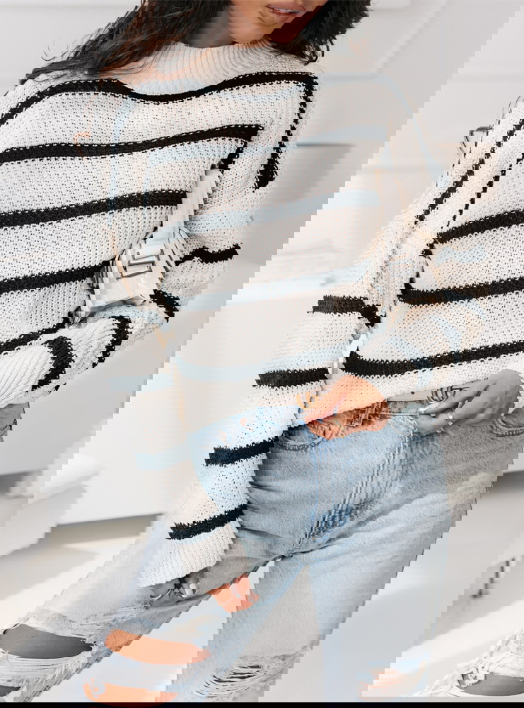 Sweter z półgolfem Moretiaa - wzór 1 To modny wybór dla osób ceniących klasykę w połączeniu z nowoczesnym wzornictwem, tworząc wyjątkową stylizację.