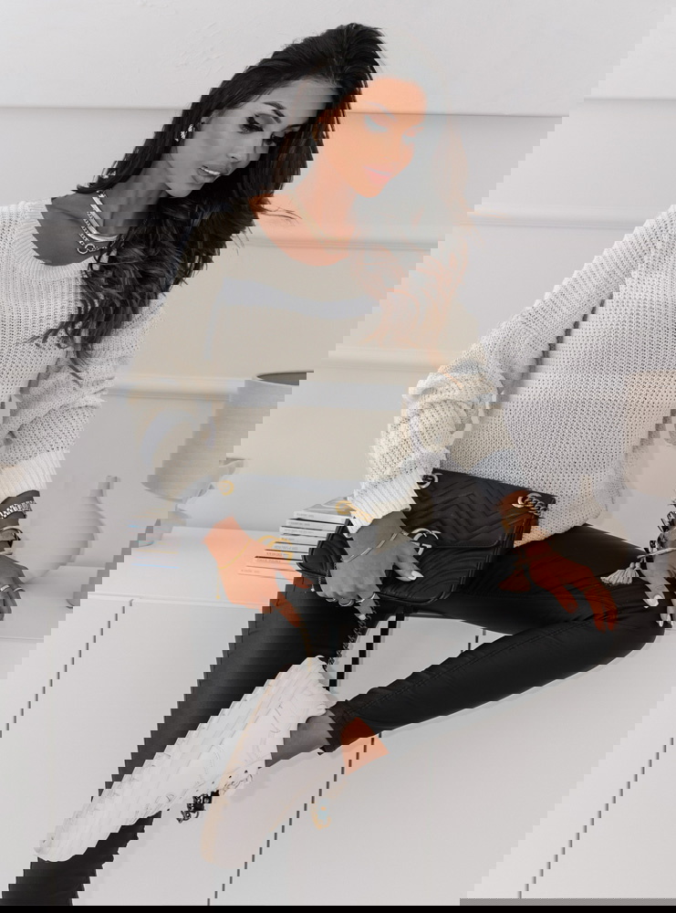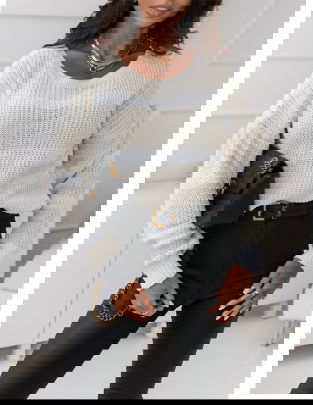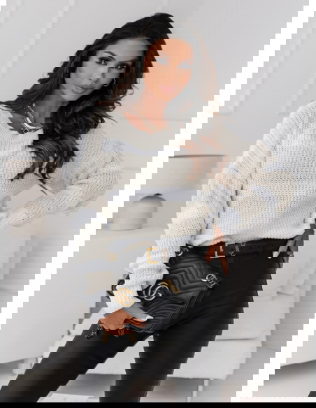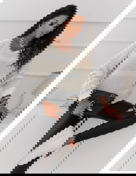 Sweter w paski Claudette to elegancki i uniwersalny element garderoby, który zachwyca prostym wzornictwem pasków. Wykonany z miękkiego i przyjemnego w dotyku materiału, sweter zapewnia komfort i ciepło w chłodniejsze dni. Jego wzór w postaci pasków dodaje swetrowi klasy i charakteru, czyniąc go doskonałym wyborem na wiele okazji.